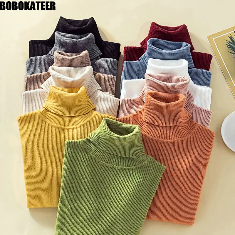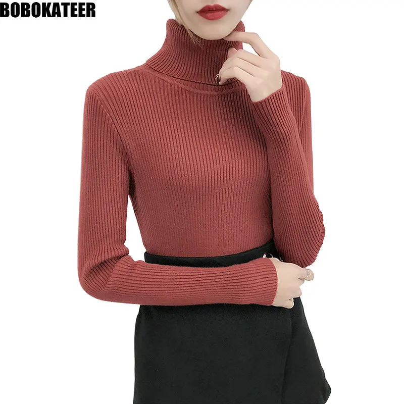 BOBOKATEER водолазка женская одежда осень свитер женский черная винтаж джемпер вязаный топы белый свитера женские пуловер Розовый кофта женская Тонкий свитеры женские с длинным рукавом зима водолазки женские 2020