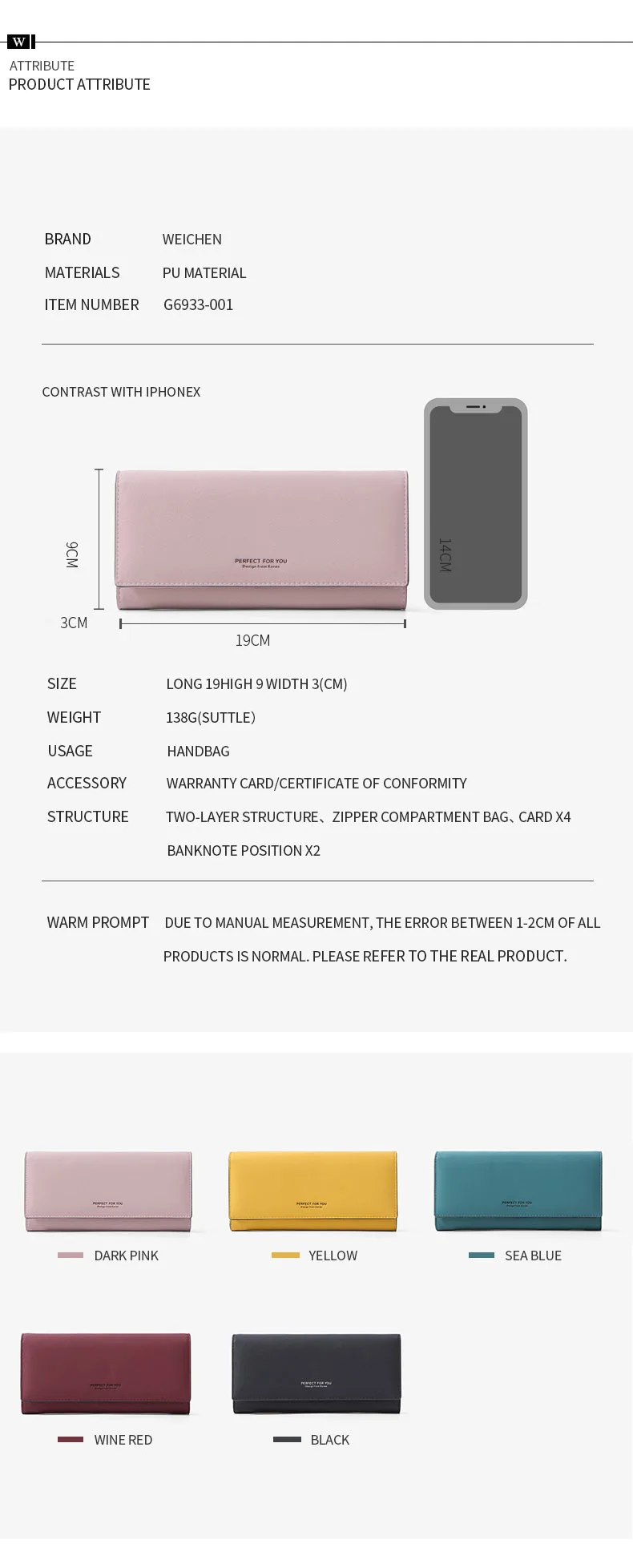 Кошелек WEICHEN, из мягкой кожи, с отделением для карт