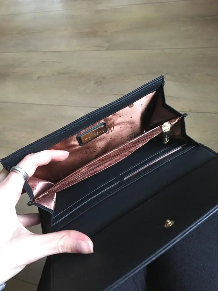 Заказала в подарок маме 21.10. Спустя неделю появился статус отмена транспортировки, хотя до 7 ноября стоял срок доставки да и на товаре пометка Plus что подразумевает ускоренную доставку. В общем с подарком у меня вышел большой облом. Продавец спустя ещё неделю отправил заново, получила заказ 22 ноября, т.е. ждала я в итоге больше месяца. Разочарована. Сам кошелёк упакован хорошо, аккуратно, кожзам приятный, но выглядит только на свою цену, брала за 650 руб. Заметно, что не кожа, ожидала что будет тоньше, но и здесь меня ожидало разочарование. В общем рекомендовать к покупке не могу, я не в восторге.