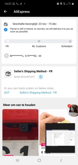heb het pakket nooit ontvangen.