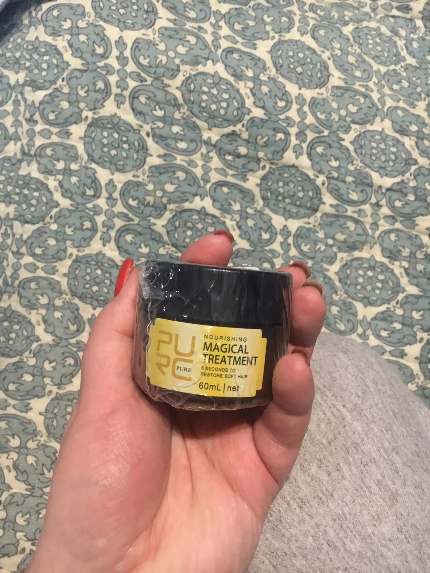 Я попросить маску, думая, что она сработает, чтобы увлажнить волосы и сгладить их, и она абсолютно ничего не делает. Я не рекомендую товар. Мне потребилось некоторое время, чтобы добраться, и мне было сообщено, что я был на почте, когда это было неверно.