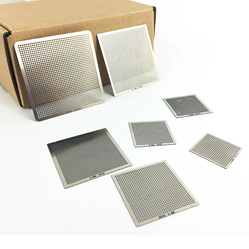 Каждый набор из 36 штук. В основном покрывает текущий общий чип BGA.Площадь стальной сетки и площадь чипа BGA соответствуют, может уменьшить отходы паяльного шара.Но для чипа, который припой шары неровные расположены или имеют разное расстояние, пожалуйста, подумайте о покупке.Примечание: