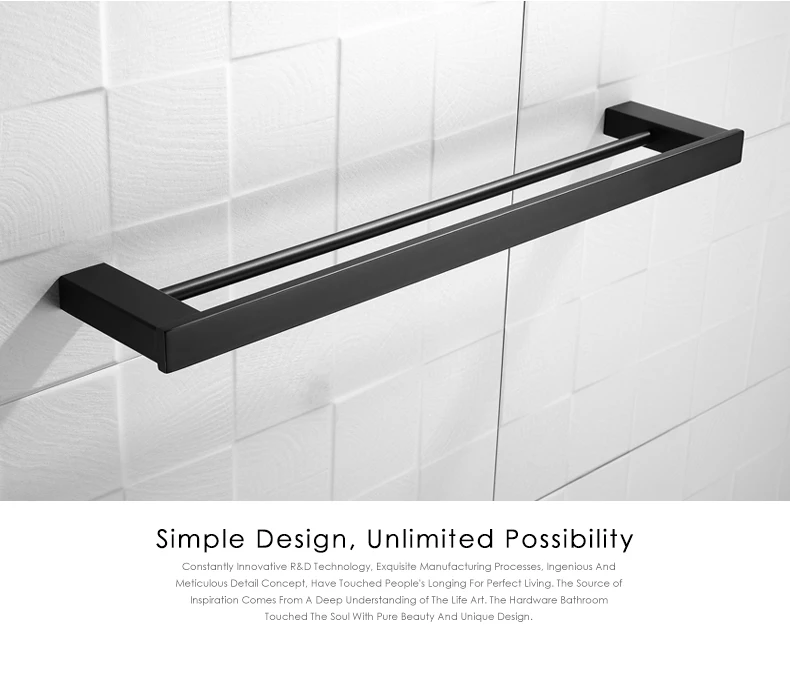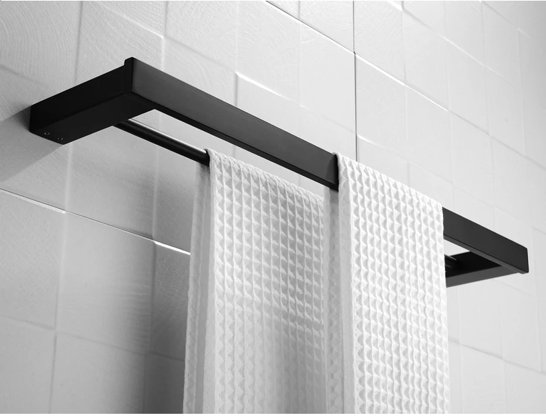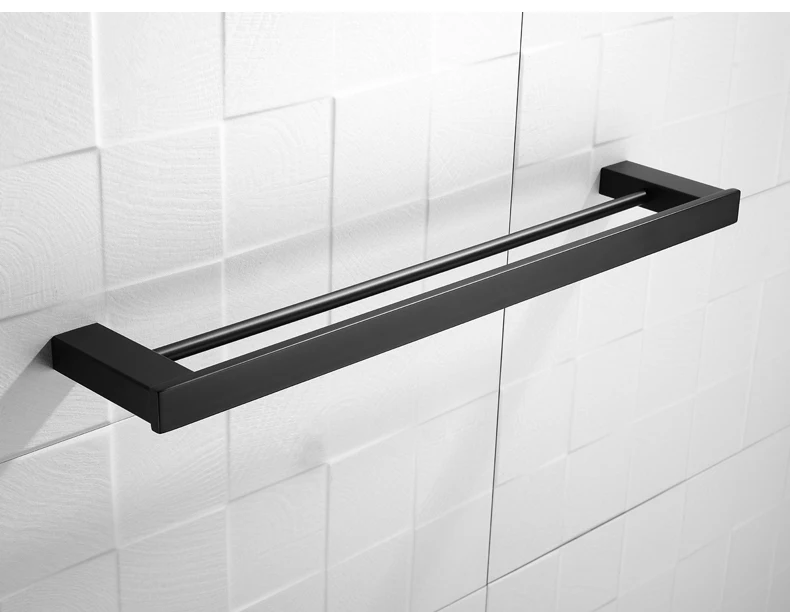 Матовая черная двойная квадратная вешалка для полотенец, настенная вешалка для полотенец, держатель для полотенец, украшение дома, отеля, квартиры