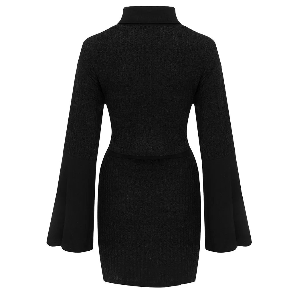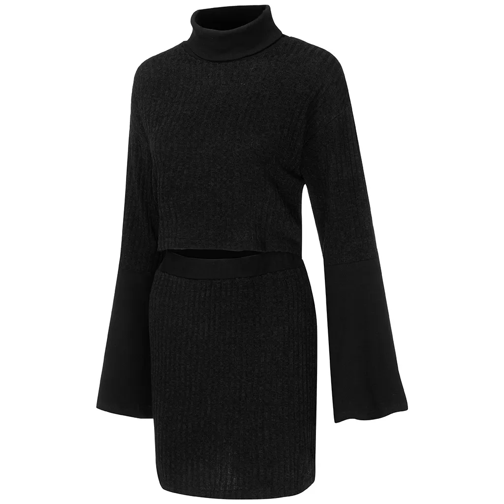 Модная Женская водолазка с длинными рукавами, вязаные топы, однотонные, обтягивающая юбка, повседневный комплект одежды, conjunto feminino # g3