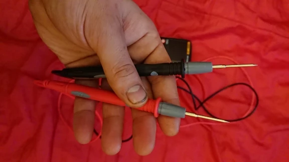 Ручки щупов хорошего качества, приятные на ощупь, но на мой взгляд, при установке комплектных длинных игл, расстояние от места хвата до кончика получается очень большое, что не добавляет точности при очень мелких работах, особенно под микроскопом. Провода длинные, при комнатной температуре достаточно мягкие, но на морозе твердеют сильно, работать можно, провод не лопается, но гнется неохотно. На удивление при такой длине проводов и накручивающихся наконечниках, сопротивление примерно 0.1Ом! что очень хорошо. Эти щупы из за своей длинны хорошо подойдут тем, у кого есть настольные мультметры. Основной минус это слишком мягкий метал применяемый в иглах, гнется моментально, они приходят с уже погнутыми иглами. Из всех щупов-игл которые у меня были, эти гнуться легче всего. Ну и "защишенные" наконечники сделаны не качественно, везде облой, пластик кривой, да и смотрятся они как чужие на ручках щупов. Но я их не использую, поэтому не проблема.