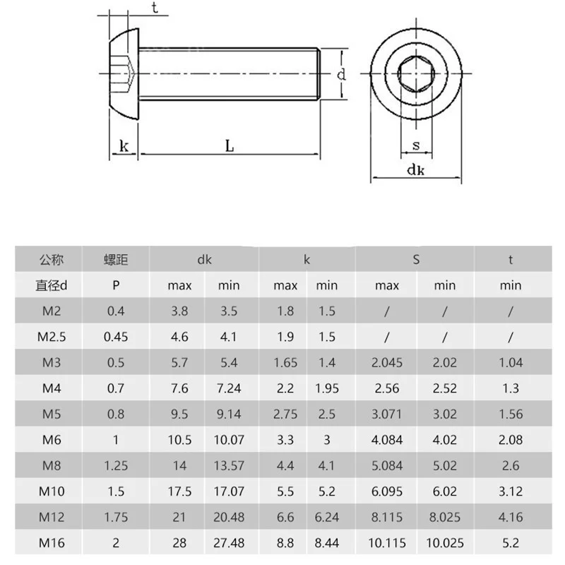 Винты с шестигранной головкой ISO7380 304, 5-50 шт., M2 M2.5 M3 M4 M5 M6 M8