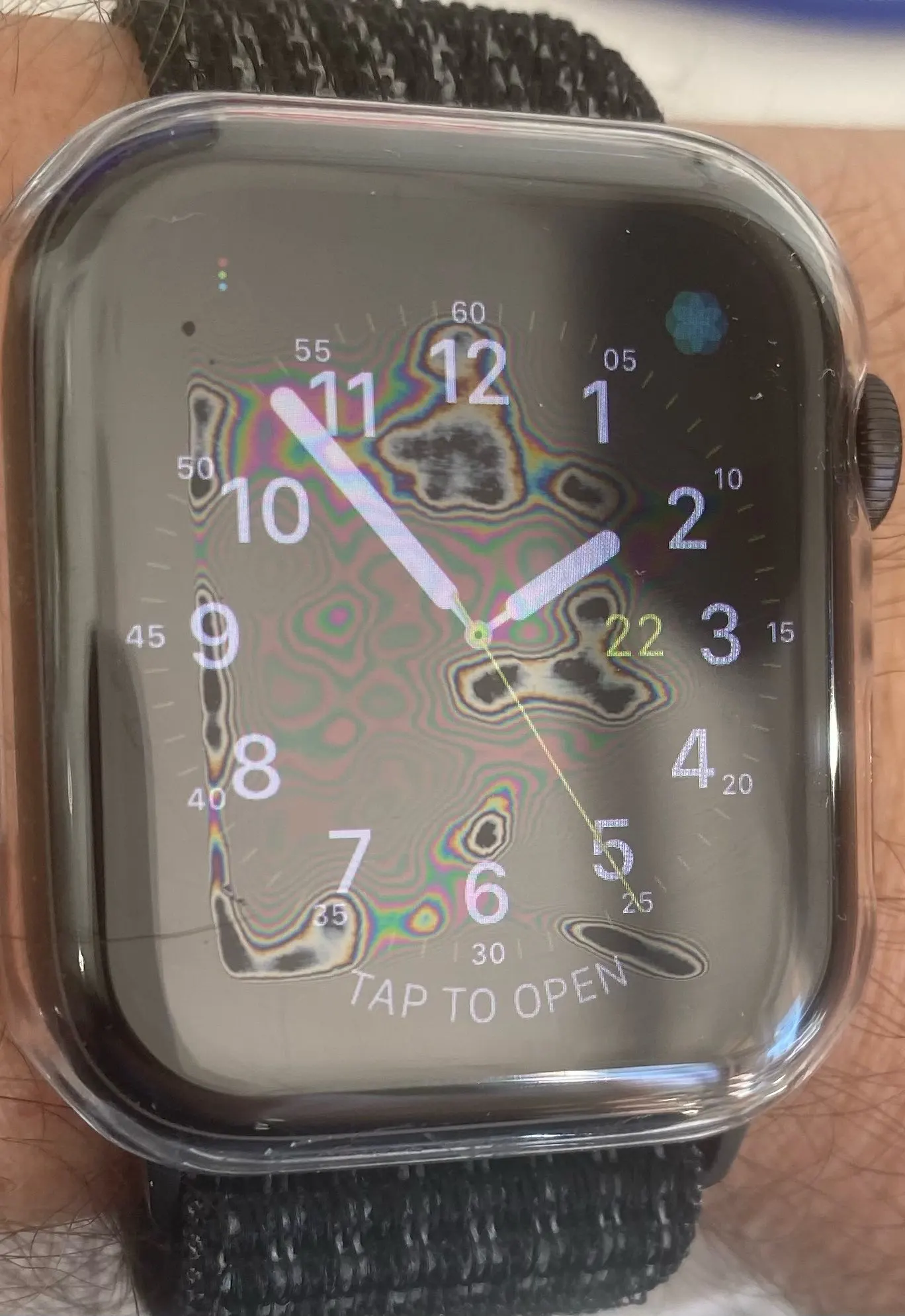 Продукт такой же, как описано, но он не хорошо сидит на часах. На самом деле, где защита экрана касается поверхности часов, вы можете увидеть красочные пятна, которые раздражают