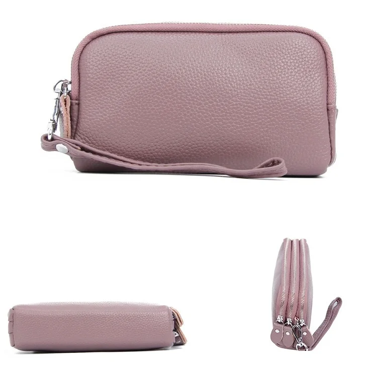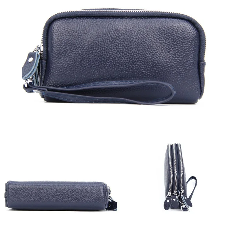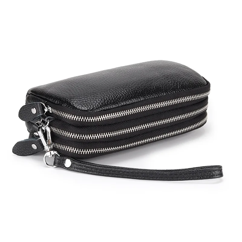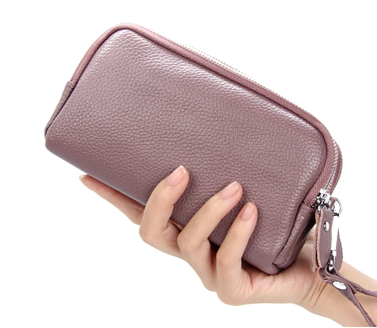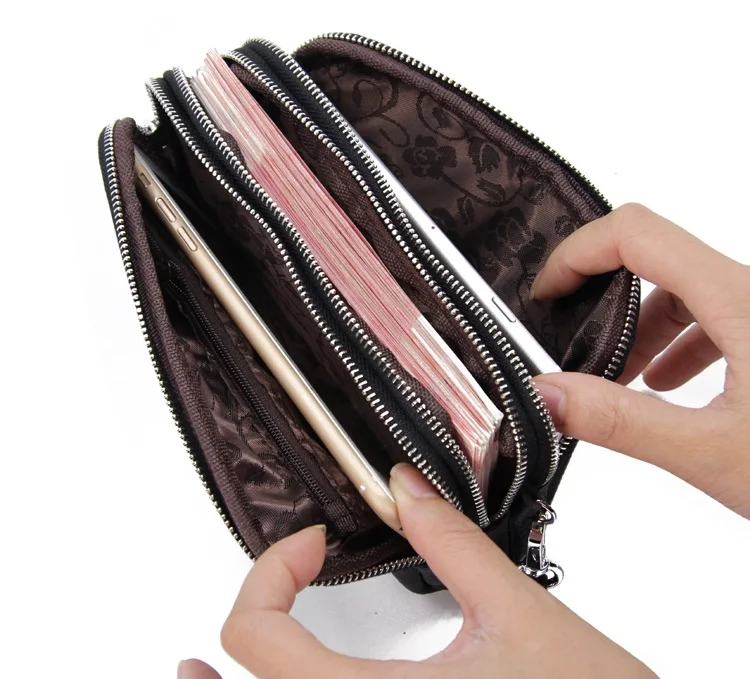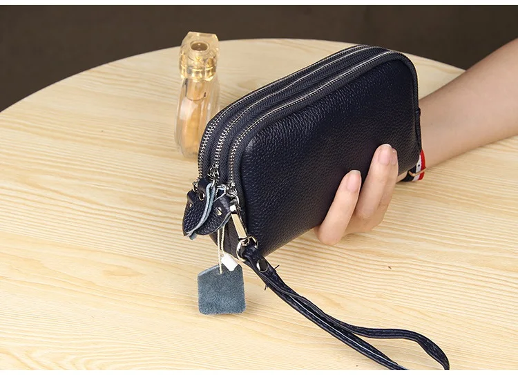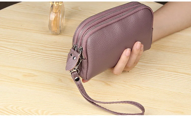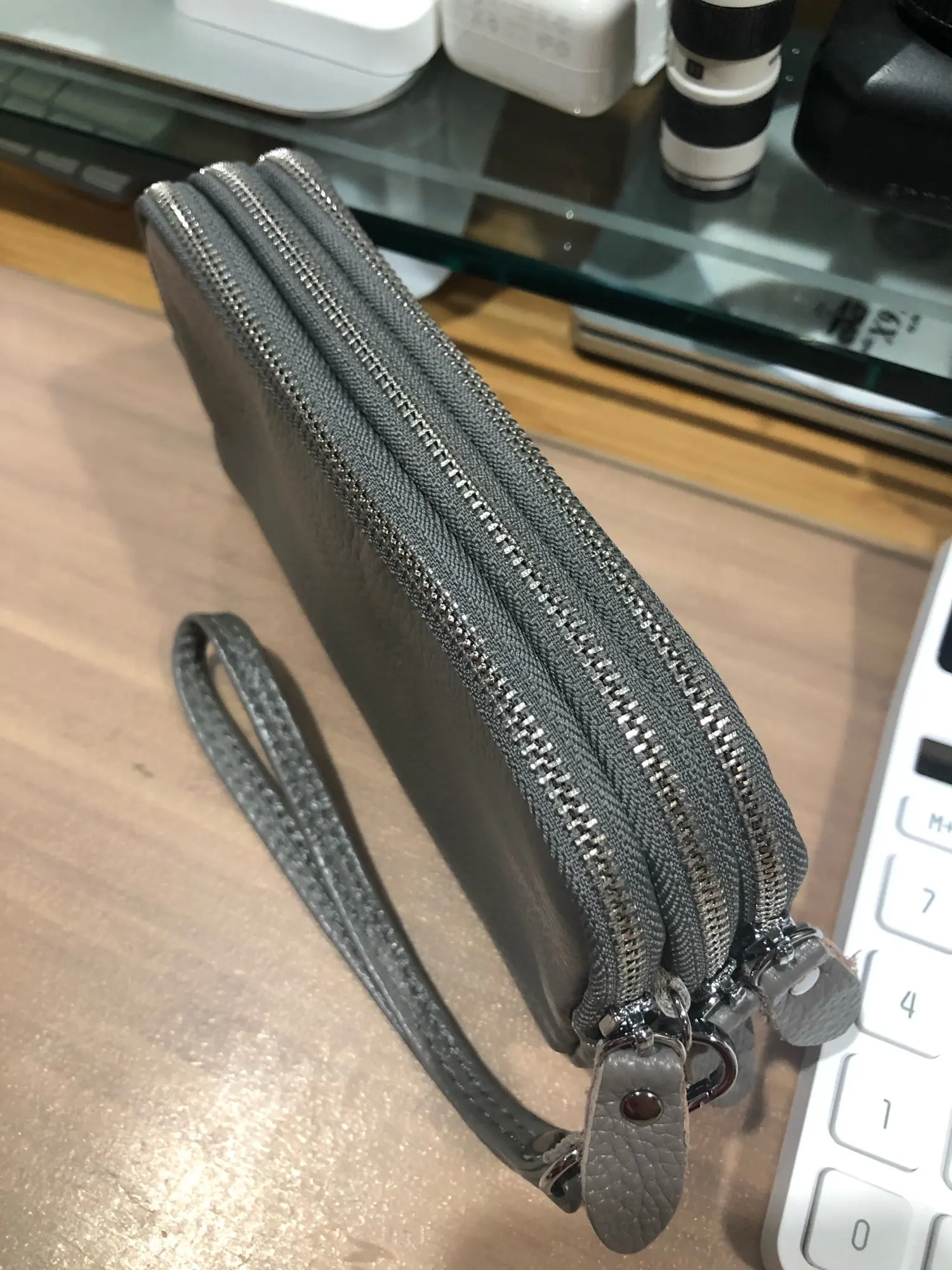 Женский Длинный кошелек MJ, из натуральной кожи, трехслойный кошелек на молнии, клатч с ремешком на запястье, Сумочка для телефона, кошельки