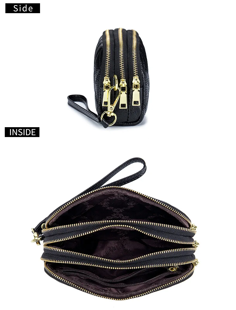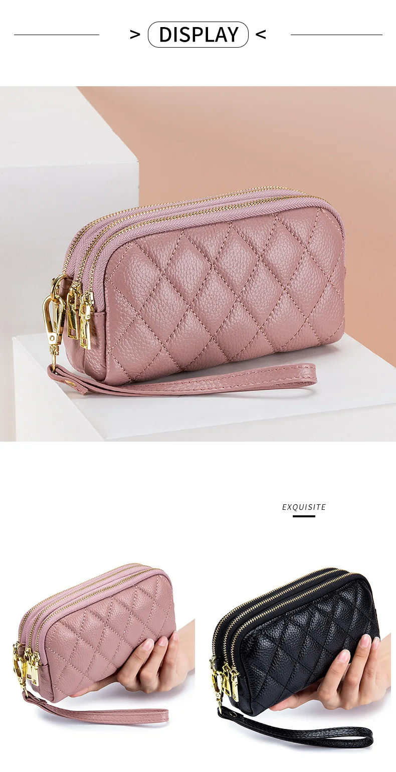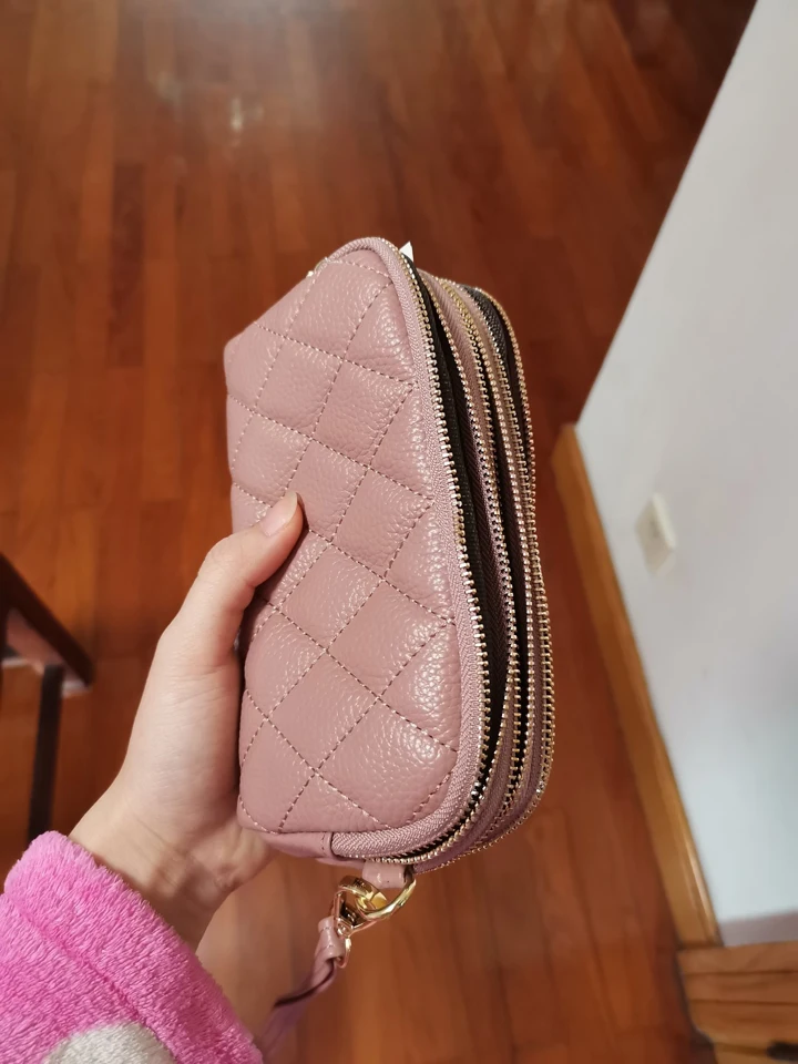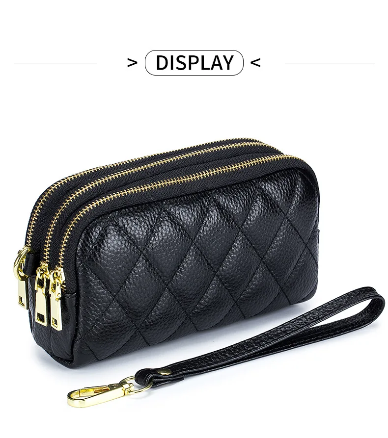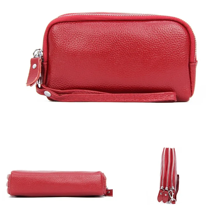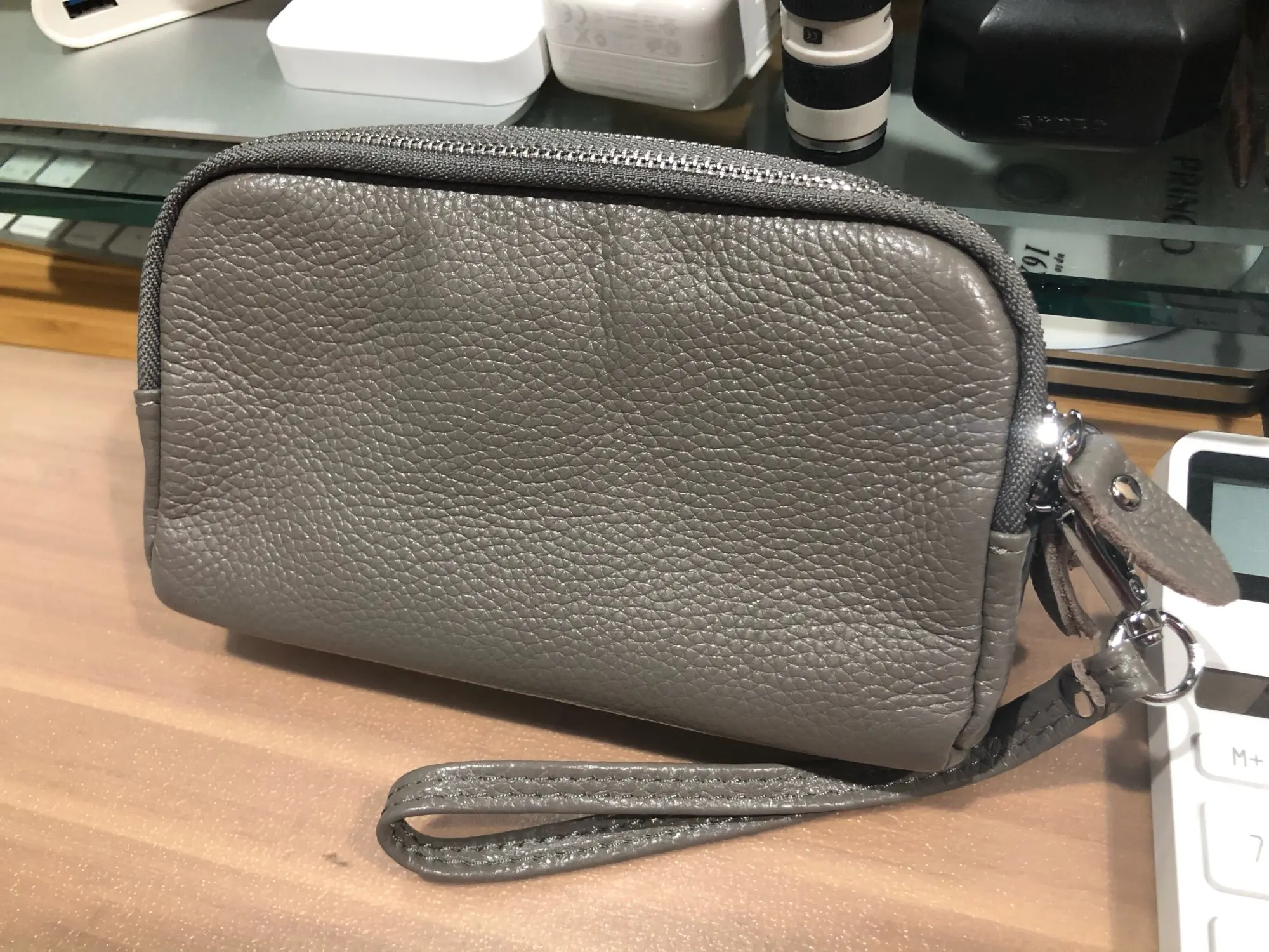Женский Длинный кошелек MJ, из натуральной кожи, трехслойный кошелек на молнии, клатч с ремешком на запястье, Сумочка для телефона, кошельки