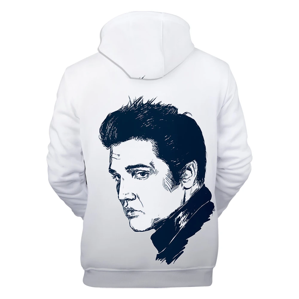 Модная новинка, удобная мужская и женская толстовка Elvis Presley с 3D рисунком, белая Повседневная Толстовка Elvis Presley, популярный пуловер с капюшоном на осень и зиму
