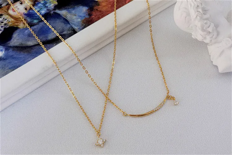 Двухслойное ожерелье для женщин из стерлингового серебра 925 пробы ...