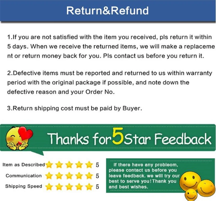 Отзывы: если вы удовлетворены нашей продукцией, пожалуйста, дайте мне хорошие отзывы и 5 звезд, спасибо. Если вы не удовлетворены нашей продукцией, пожалуйста, свяжитесь с нами, скажите, в чем проблема, мы поможем вам решить проблему. Потому что наша цель: 100% Удовлетворенность клиентов. Спор: есть какие-либо вопросы, пожалуйста, свяжитесь с нами, не открывайте спор, потому что у нас есть возможность помочь вам решить все проблемы.