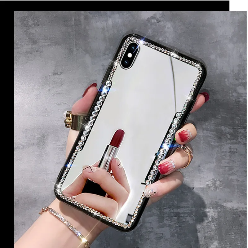 Зеркальный женский чехол со стразами для макияжа iPhone 11 12 13 Pr...