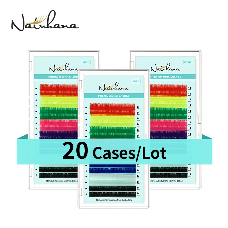 NATUHANA 20 чехловпартия разные цвета завивка BCD наращивание ресниц премиум индивидуальные норковые натуральные мягкие ресницы Радужный цвет ed ресницы
