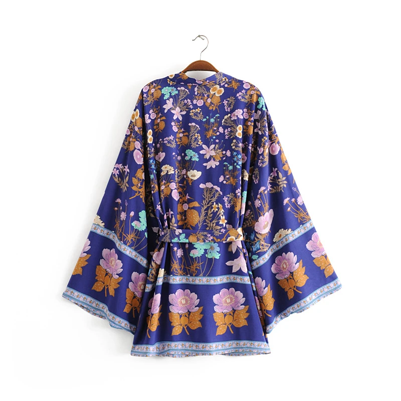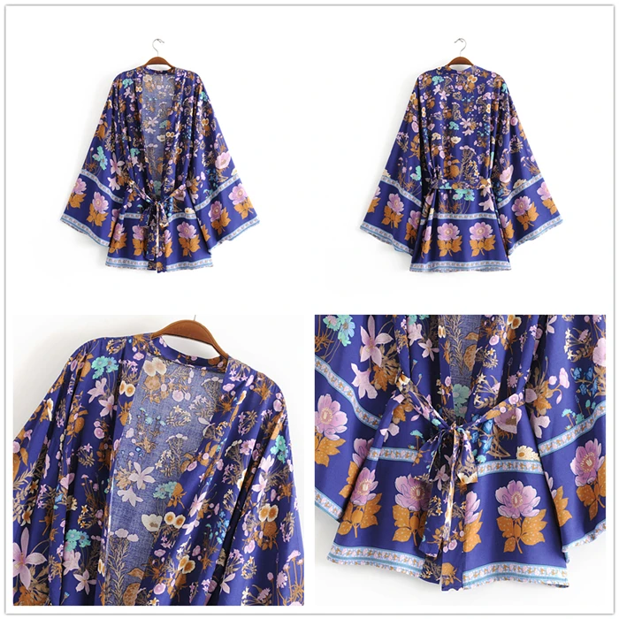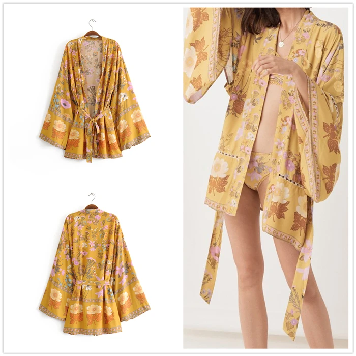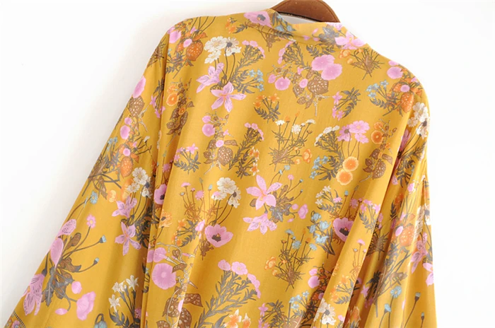 Женское кимоно в стиле бохо Chu Sau beauty, длинное пляжное кимоно с цветочным принтом, с поясом, красивое мини-платье, новинка 2019