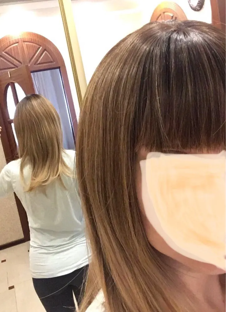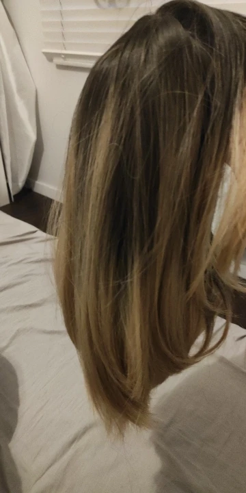 Очень понрравился парик. Соответствует описанию. только у меня не такая длингая челка как на фото. Волосы очень реалистичные так как много оттенков как и в натуральных окрашенных по технике омбре. Волос много. сначала немного вылезло. это нормально для нового парика. Сейчас ничего не выпадает. Вообщем качество отличное!