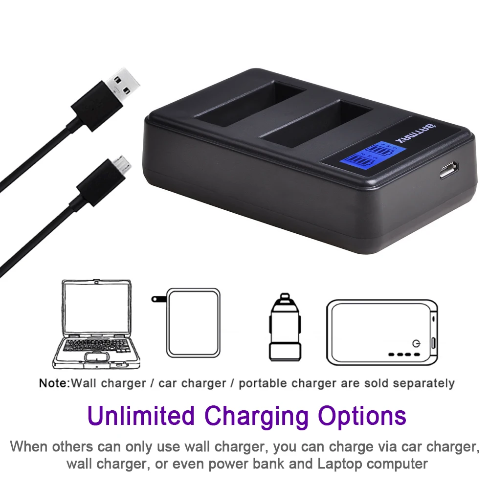 4 шт., аккумулятор 1400 мА ч, 3,85 В, двойное зарядное устройство с ЖК-дисплеем, USB AZ16-1, для экшн-камер Xiaomi Yi 2, 4K