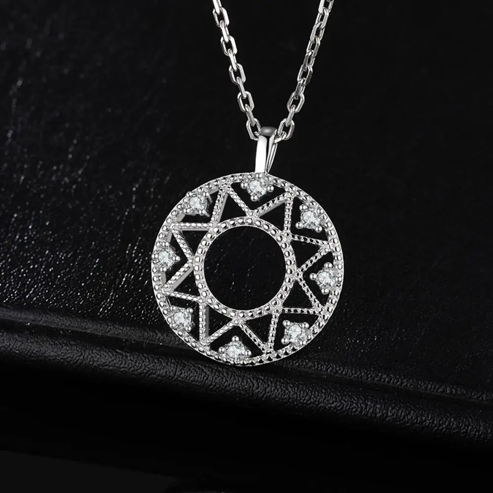 Sparkle micro cubic zirconias adorned on crop circle,milgrain as a symbol of the harvest of cool autumn, this hand cut coin pendant in 925 sterling silver will win your attention.