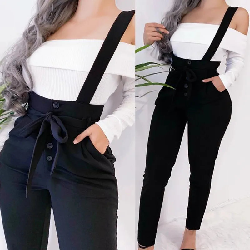 Женский свободный комбинезон BKLD, однотонный комбинезон с высокой талией, повседневные уличные штаны, 2019