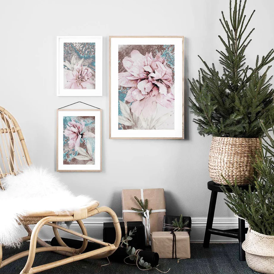 Современный розовый цветок пиона, скандинавский постер для украшени...