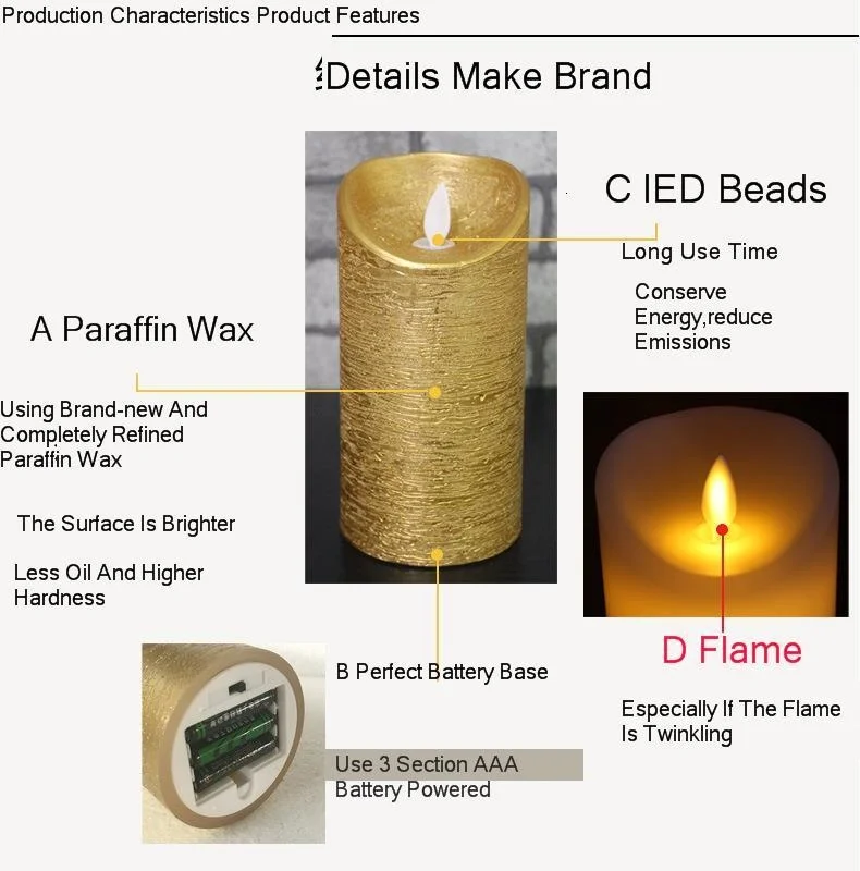 I received my gold tone candle and the only problem is when you insert the 3 AAA batteries, the middle battery is hard to put in the candle. Its so hard to fit. They don't fit good. A little disappointed, they must correct the problem in their manufacturing.
