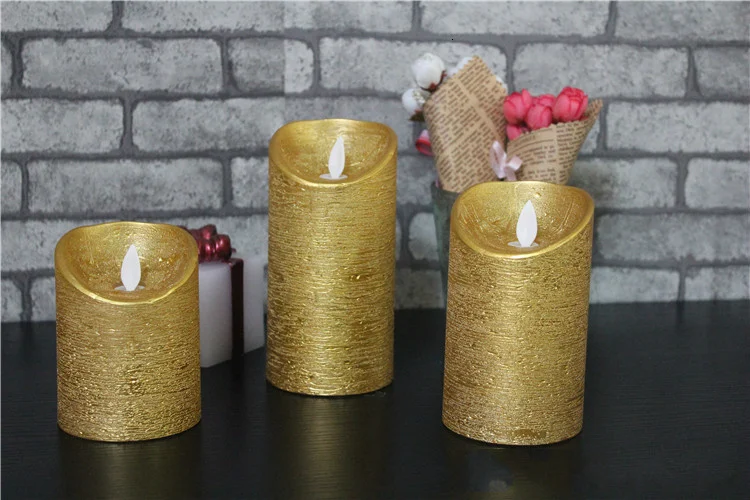 Рождественская свеча, Золотой восковой дисплей, Золотая розовая золотая металлическая краска, качели, Светодиодная свеча, свечи для дня рождения