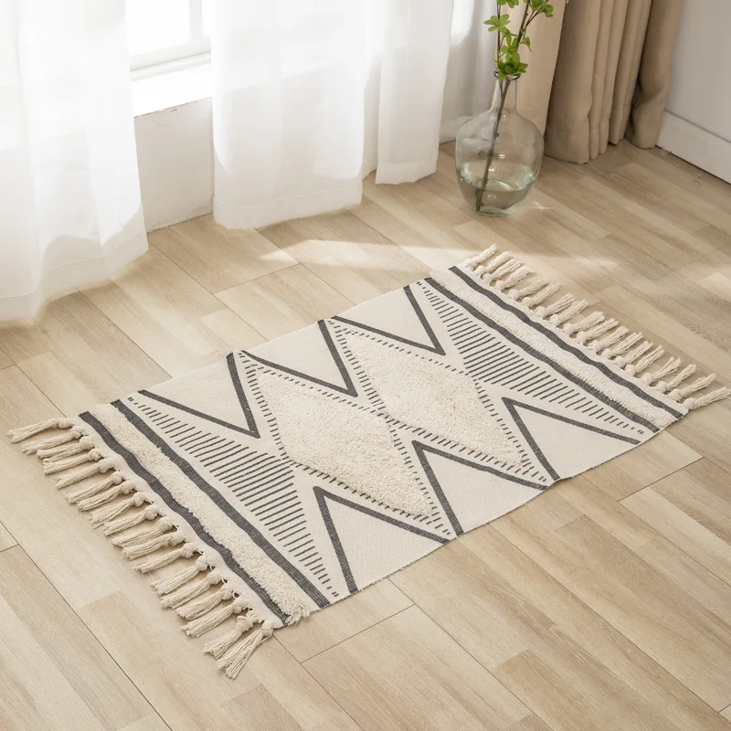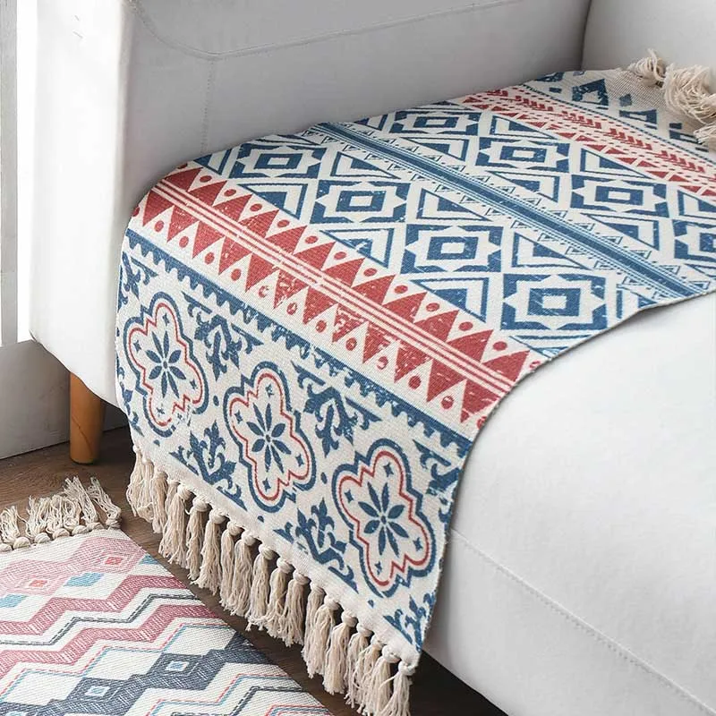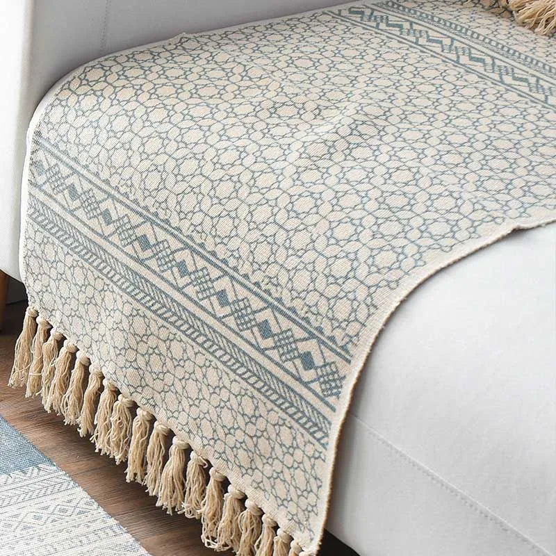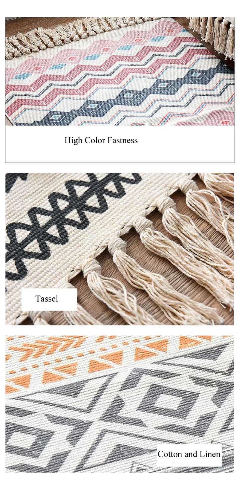 Хлопковый и льняной напольный коврик для гостиной, спальни, прикроватный коврик, винтажный семейный плед с кисточками