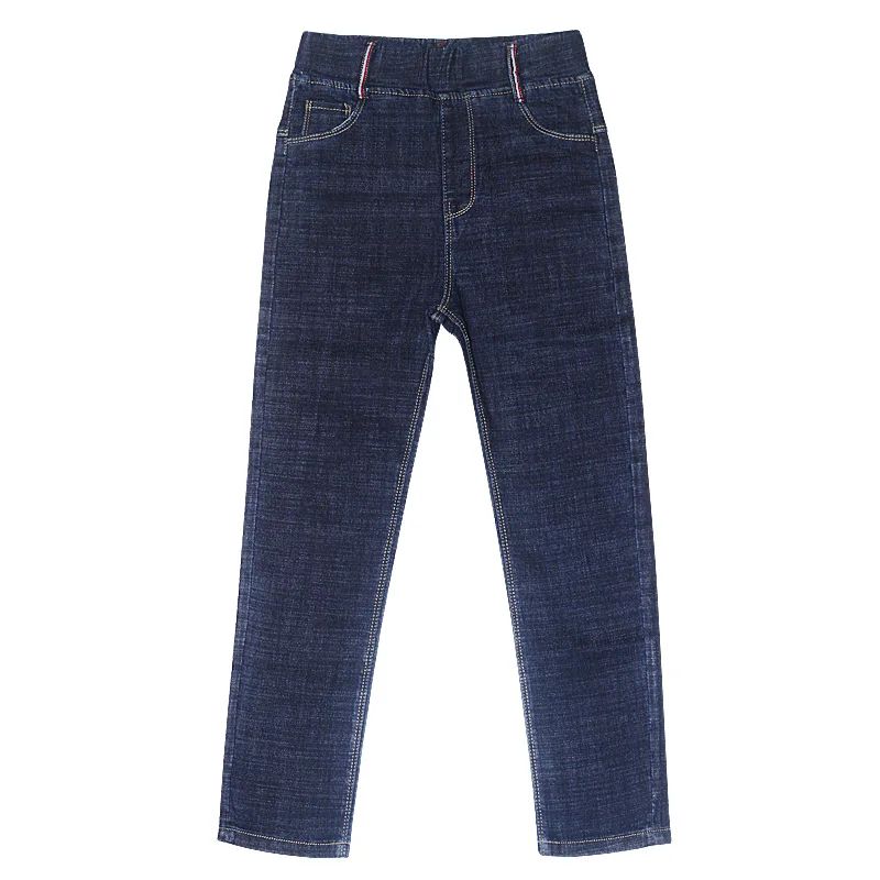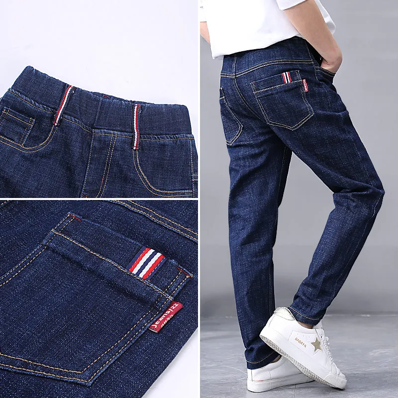 Джинсы для мальчиков, модные однотонные синие джинсовые брюки, повседневные синие джинсы с потертостями, свободные длинные штаны для полных мальчиков