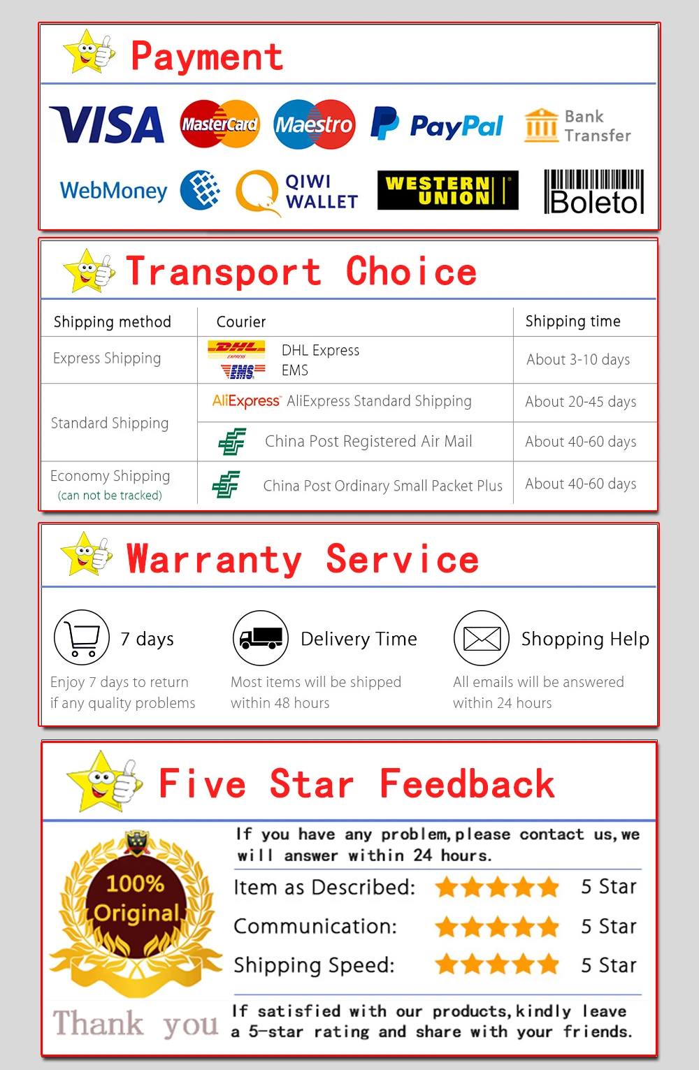 Привет. Мой друг, добро пожаловать сюда, мы предоставим вам лучшие продукты и услуги. Если у вас есть какие-либо вопросы, пожалуйста, свяжитесь с нами. Мы рады помочь Вам. Мы свяжемся с Вами в течение 24 часов. Большое спасибо. 1. Перед отправкой, мы проверим ваш адрес, если ваш адрес находится в удаленном районе, мы свяжемся с вами! 2. Наши товары не включены в цену таможенных пошлин и расходов на удаленную доставку 3. Если вам нужен счет-фактура, пожалуйста, оставьте мне сообщение и оставьте свой адрес электронной почты, я отправлю в ваш почтовый ящик в течение 8 часов! 4. Наши продукты не включают таможенные пошлины. Если таможня вашей страны берет таможенные пошлины, пожалуйста, оплатите вовремя. Мы не будем нести ответственность, если товары возвращены или уничтожены, потому что нет быстрой оплаты таможенных пошлин. Спасибо за понимание. 5. Если все вышесказанное будет в порядке, мы немедленно отправим вам товар. Удачи! 6. Товары, которые мы отправляем, соответствуют продуктам на картинке. Если у вас есть какие-либо возражения против бренда в параметрах продукта и бренд на картинке, пожалуйста, не покупайте напрямую или свяжитесь с нами! Если вы покупаете напрямую, вы соглашаетесь с брендом на нашей фотографии! Мы отправим товар в соответствии с вашим запросом. Спасибо!