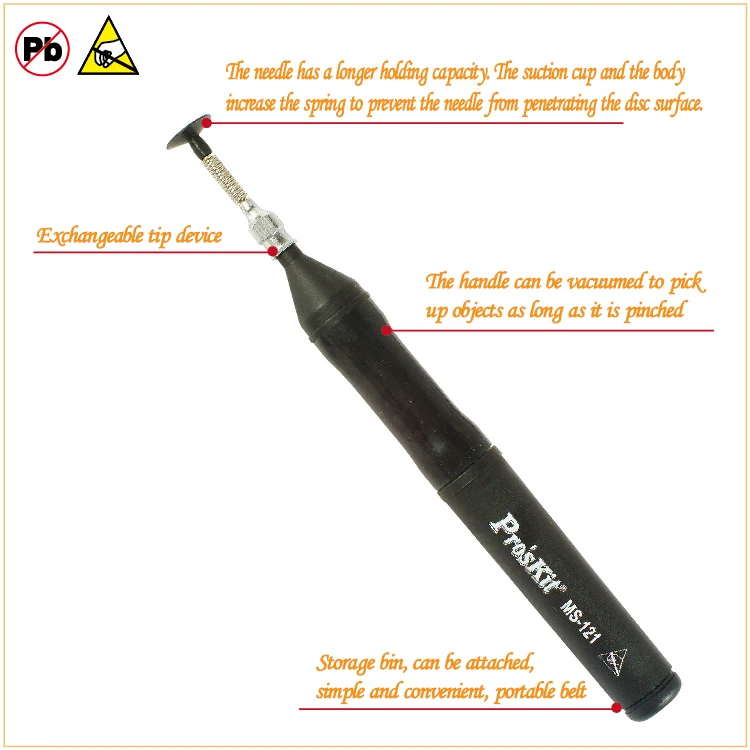 Портативная Антистатическая простая вакуумная Ручка Pro'sKit MS-121 вакуумная Ручка для длительного хранения электронных компонентов 50 г