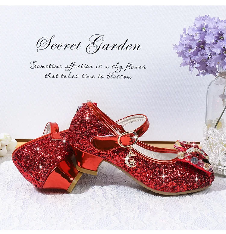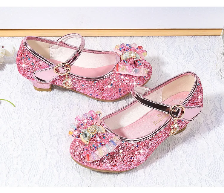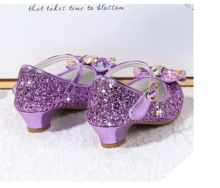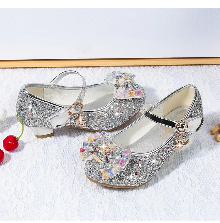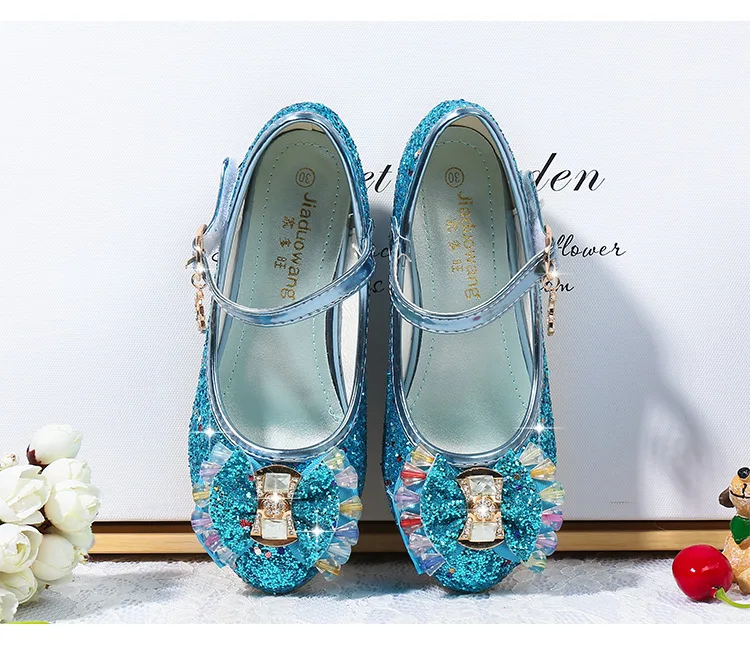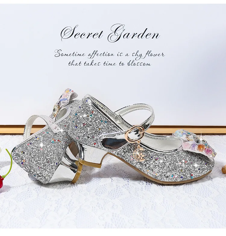 Туфли детские кожаные с цветочным узором, на высоком каблуке, синие, розовые, серебристые