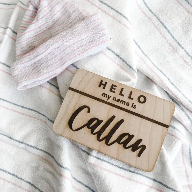 Деревянная бирка с надписью Hello my name is деревянная, объявление о рождении, бирка с именем новорожденного, фотография ребенка