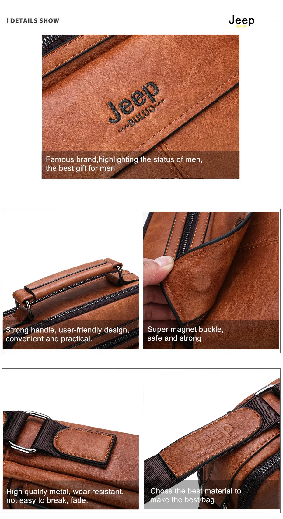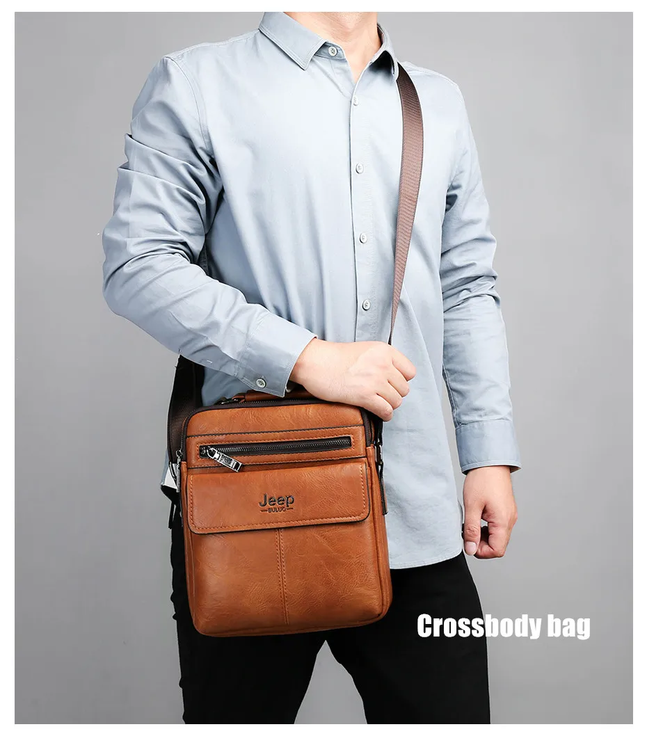 Мужская сумка через плечо JEEP BULUO, черная сумка-мессенджер из спилка, деловая сумка, все сезоны, 2019