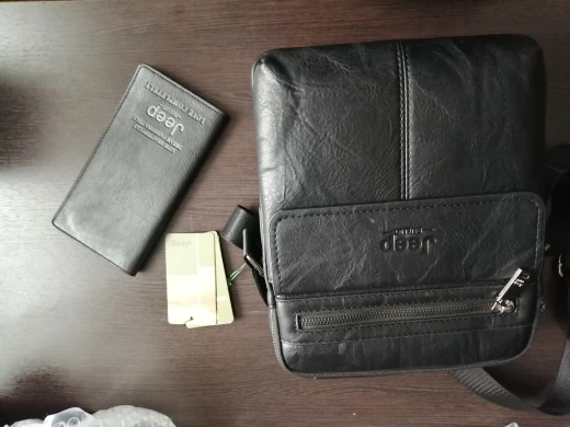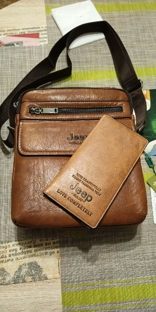 Покупала за 1700 сумка+кошелек. Очень красивая и удобная сумка, папе понравилось. Много отсеков, есть удобная ручка. Размер самый подходящий. Доставка - всего неделя в Волгоград, если заказывать со склада в России.
