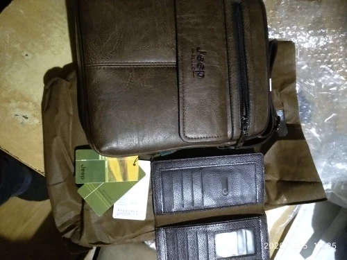 Товар получили через 38 дней. Очень понравилась сумка мужу и мне то же. Красивая стильная, брали по акции за 1600.т.р. В черную пятницу. Доканца не уверена что это кожа, но на ошуп, приятная. Спасибо продовцу.