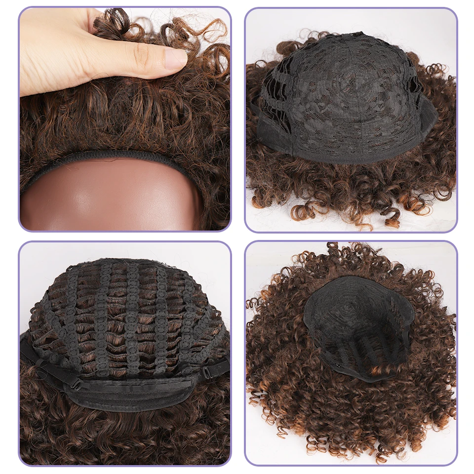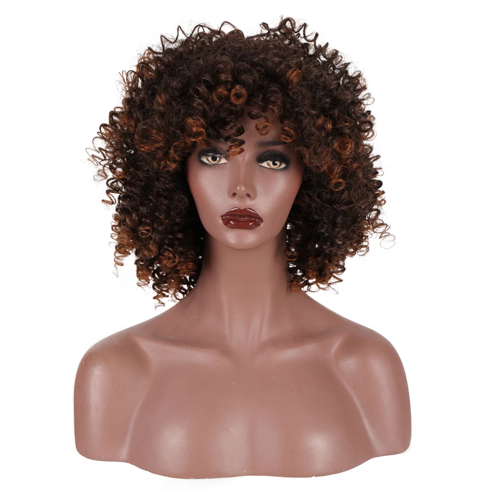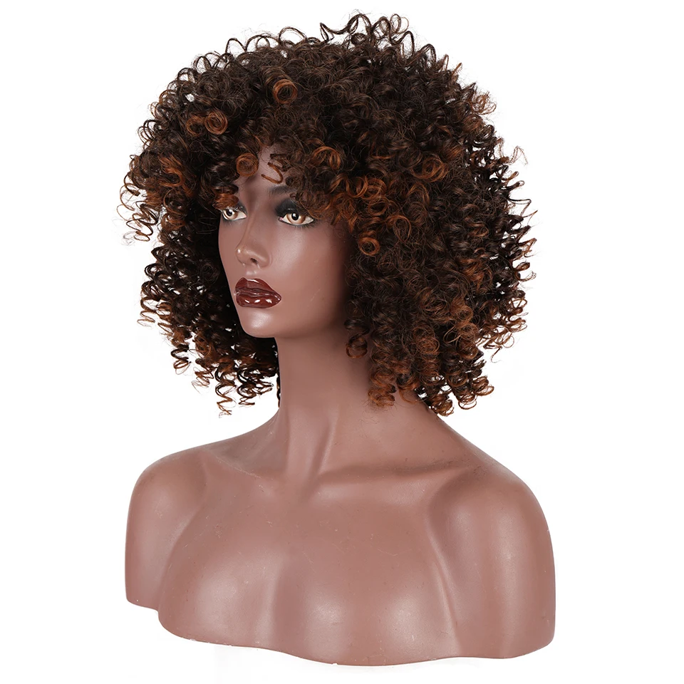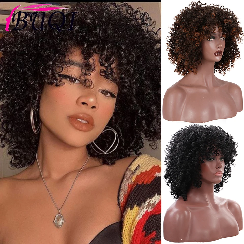 BUQI синтетические парики, Короткие афро кудрявые вьющиеся парики для черных женщин, пушистые коричневые черные парики с эффектом омбре