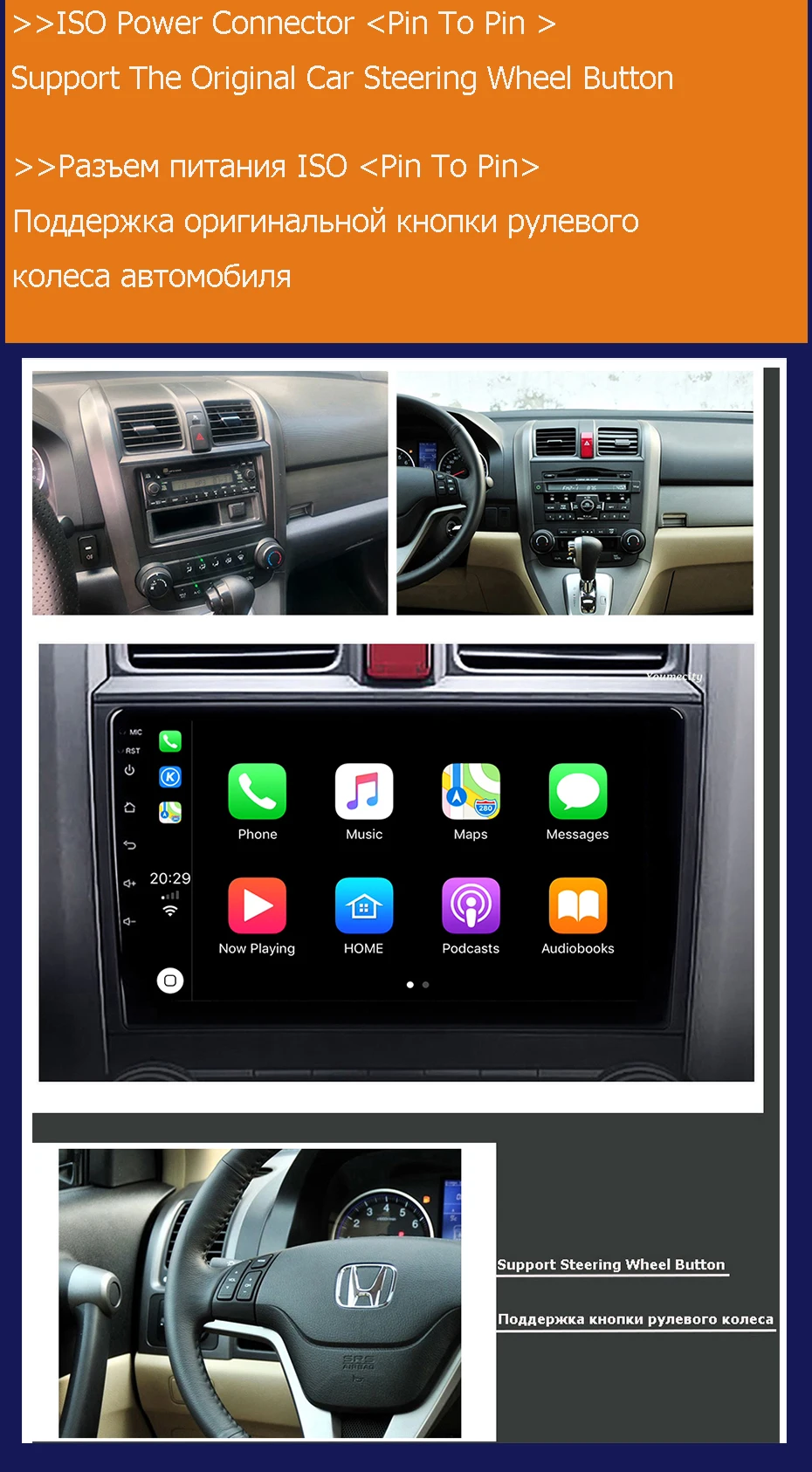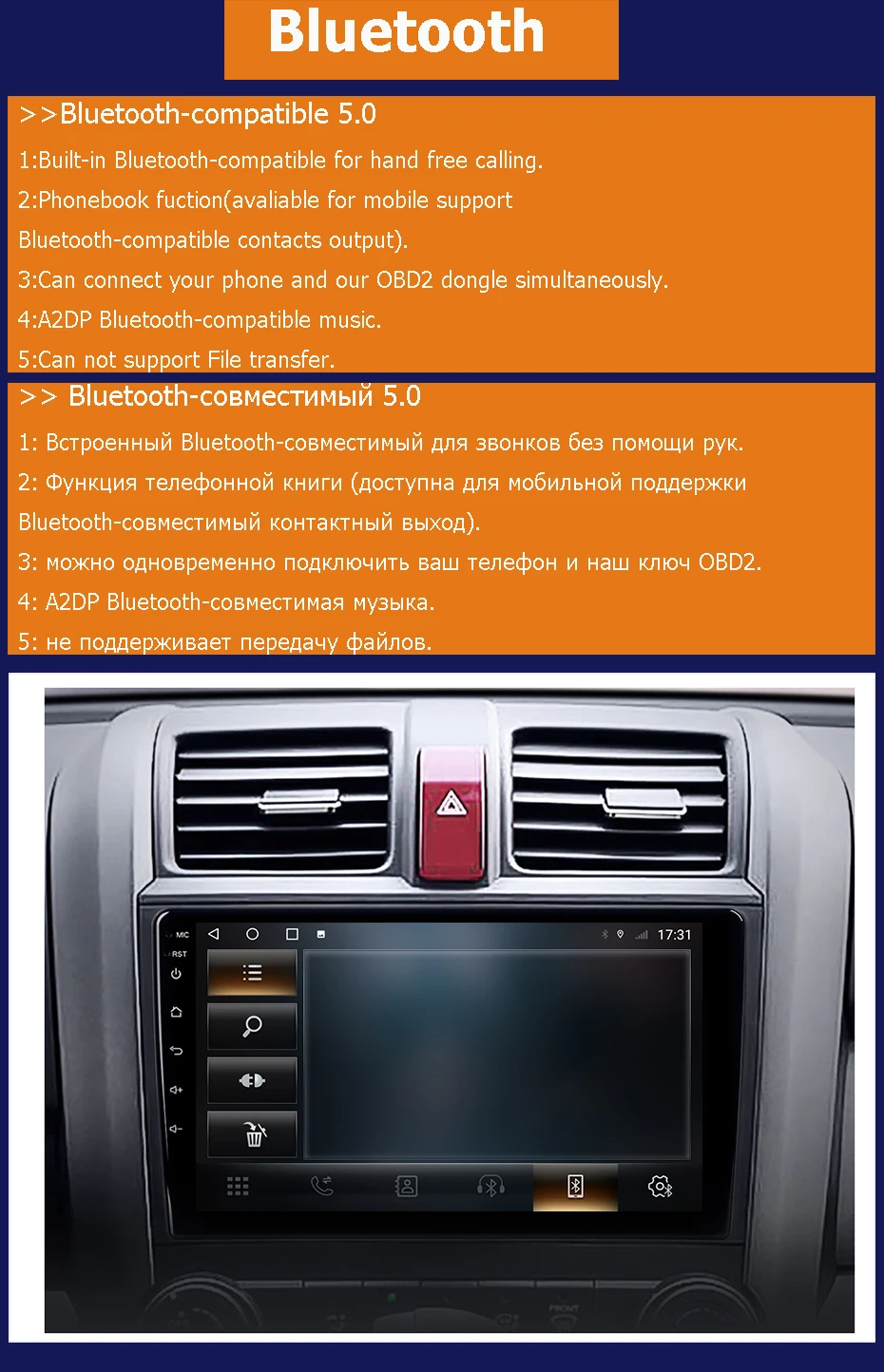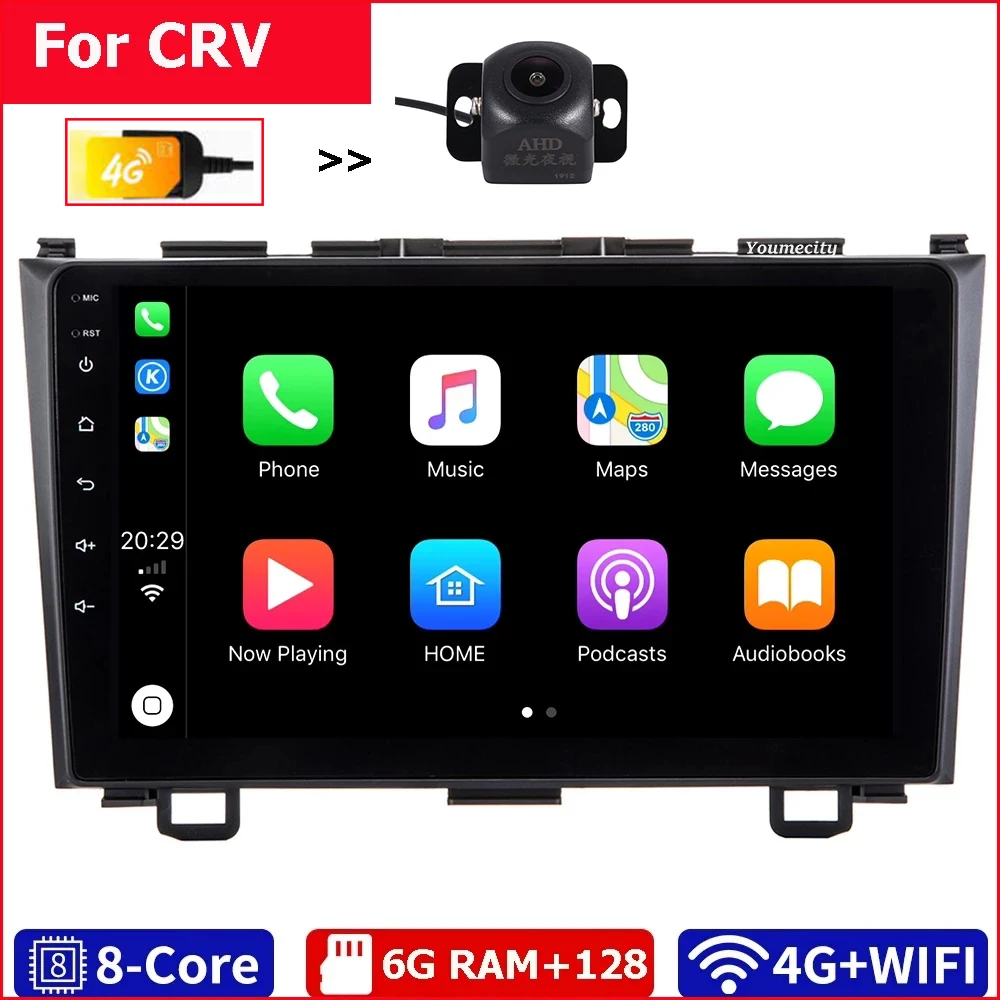 Автомобильный мультимедийный плеер, головное устройство Android 10,0 магнитола для Honda CRV 3 2007-2011 с радио Gps 2Din Carplay Авто Wifi + 4G сеть+Восьмиядерный процессор+яндекс+navitel карта+Верхняя 8 ГБ RAM