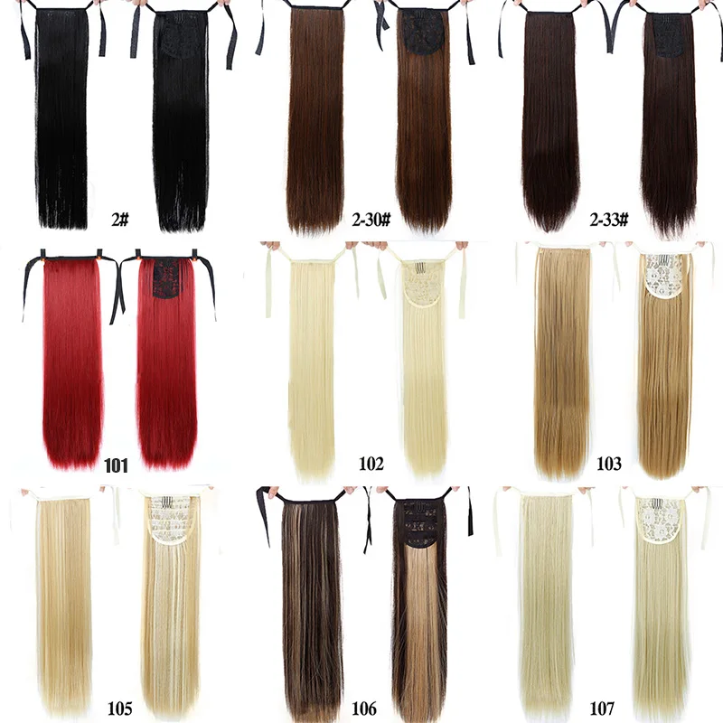 Длинные шелковистые прямые Конские хвосты на зажиме, синтетический ...