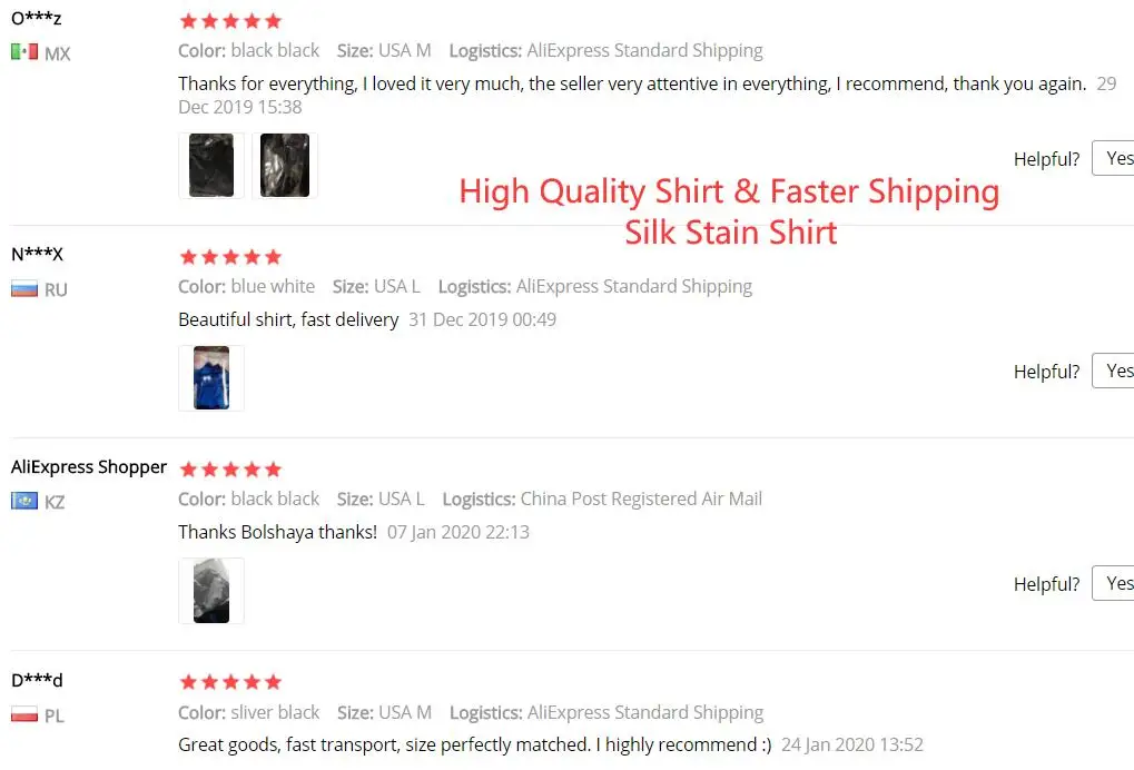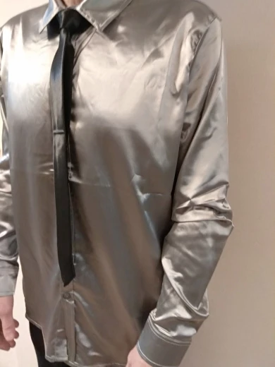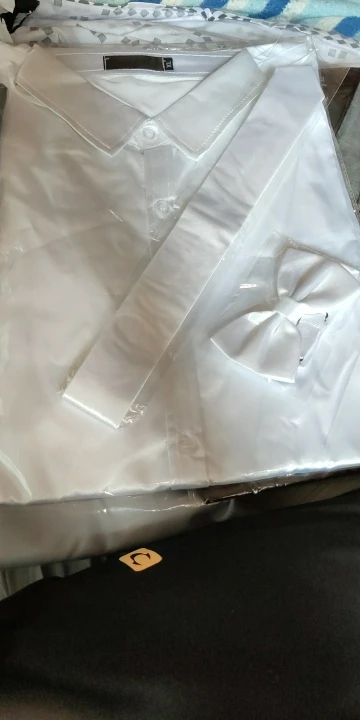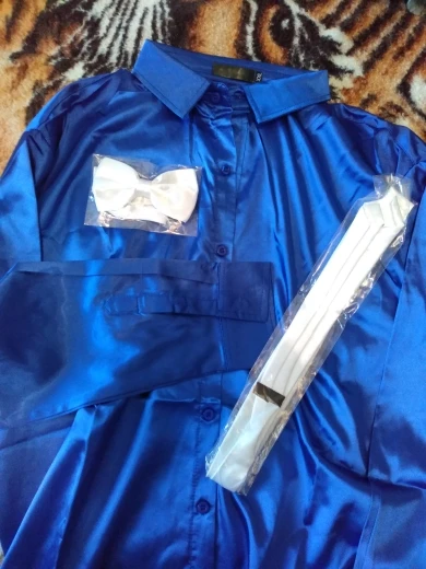Рубашка по описанию полуприлегсющего силуэта по итогу- обычная, прямого покроя, без выточек. Ткань просто блестящая, не атласная, очень тонкая, поэтому сильно просвечивается, мнется даже во время утюжки, очень боялась сделать затяжки заусенцами. Так то на вешалке выглядит неплохо, как в носке - будем посмотреть. Галстук-бабочка на регулируемой застежке из пластмасса, размер и качество пошива устраивает. Галстук-селедочка очень хорош, искали такой. От таможни рф собрали 4 посылки в одну и отслеживалась только одна, когда получила, порадовало, волновалась за другие, т.к. не отслеживались. На ДВ заказы шли чуть больше месяца.