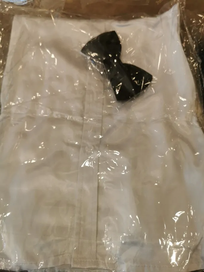 Описание размера не соответствует. Заказал L, пришел товар с наклейкой L, но по измерениям это М. Качество товара очень хорошее. В комплекте и галстук и бабочка. Доставка быстрая
