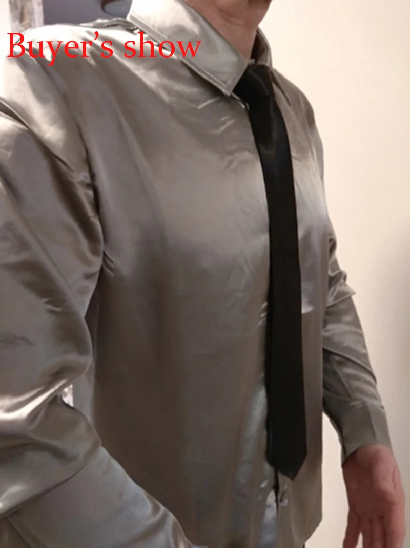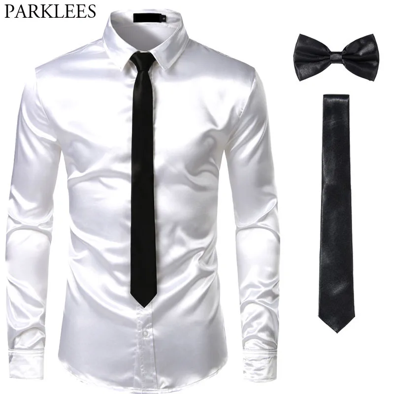 Черные мужские шелковые рубашки, 3 шт. (рубашка + галстук-бабочка), гладкая атласная рубашка, Мужские приталенные, вечерние, выпускные, повседневные рубашки, мужские социальные рубашки