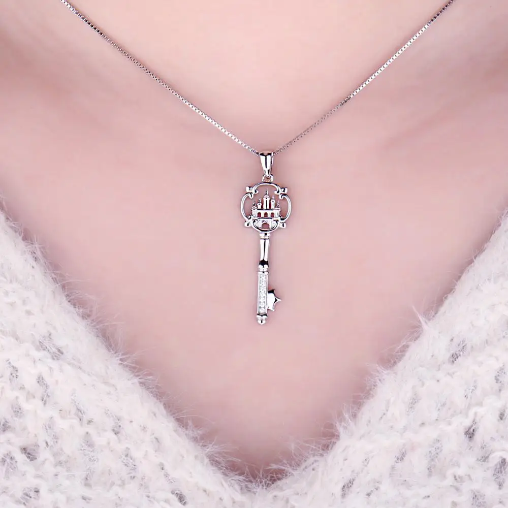 Enchanted key pendant from JewelryPalace, crafted in 925 sterling silver and embellished with a castle at the head of the key. Castle is always the dreamland of a girl, take her to your wonderland with this charming key pendant.