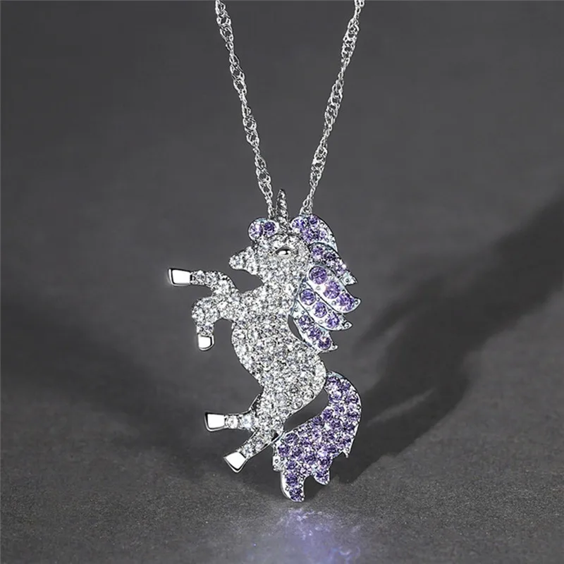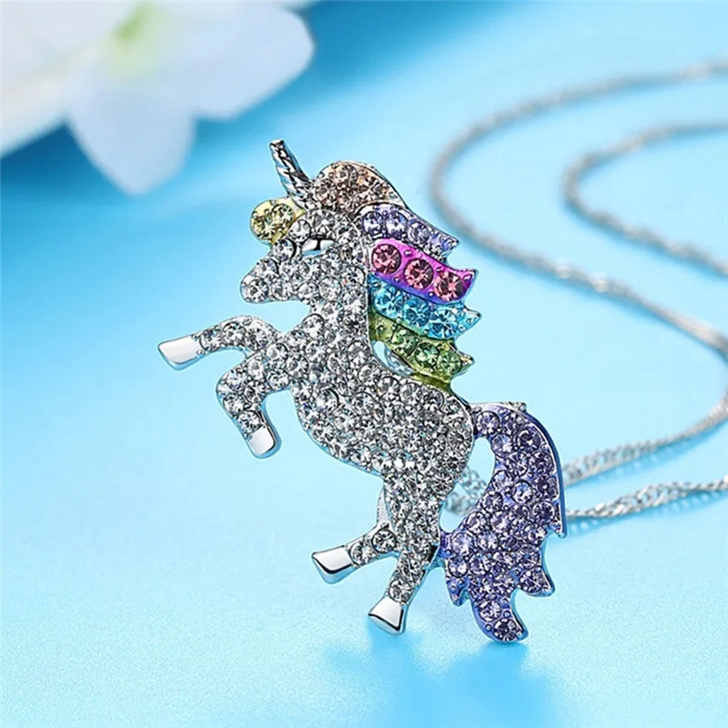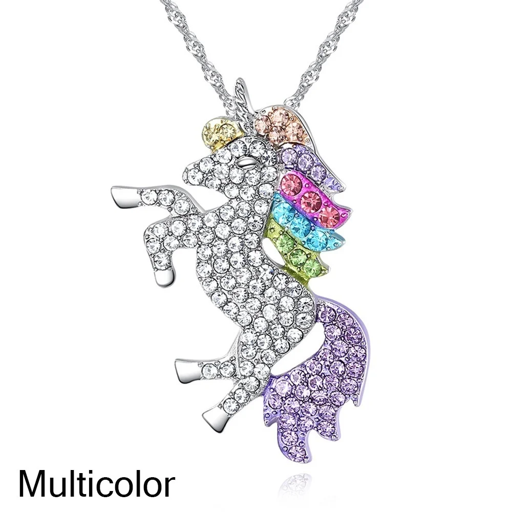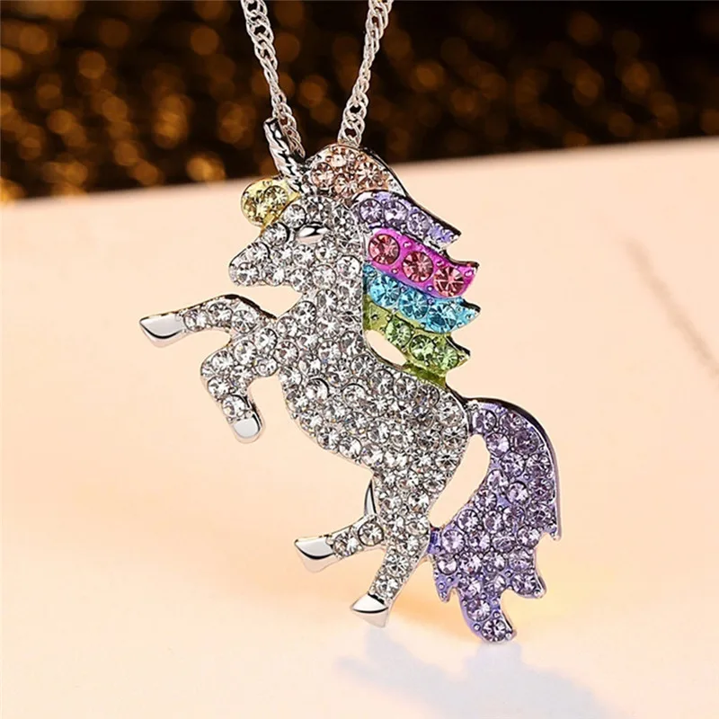 FDLK семицветное ожерелье с подвеской в виде единорога, ювелирные изделия из кристаллов, модные женские очаровательные Повседневные Вечерние аксессуары