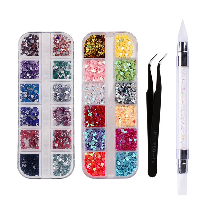 Набор для украшения ногтей, стразы с изогнутым черным пинцетом, белый двусторонний Белый силиконовый скульптурный карандаш, инструменты для нейл-арта