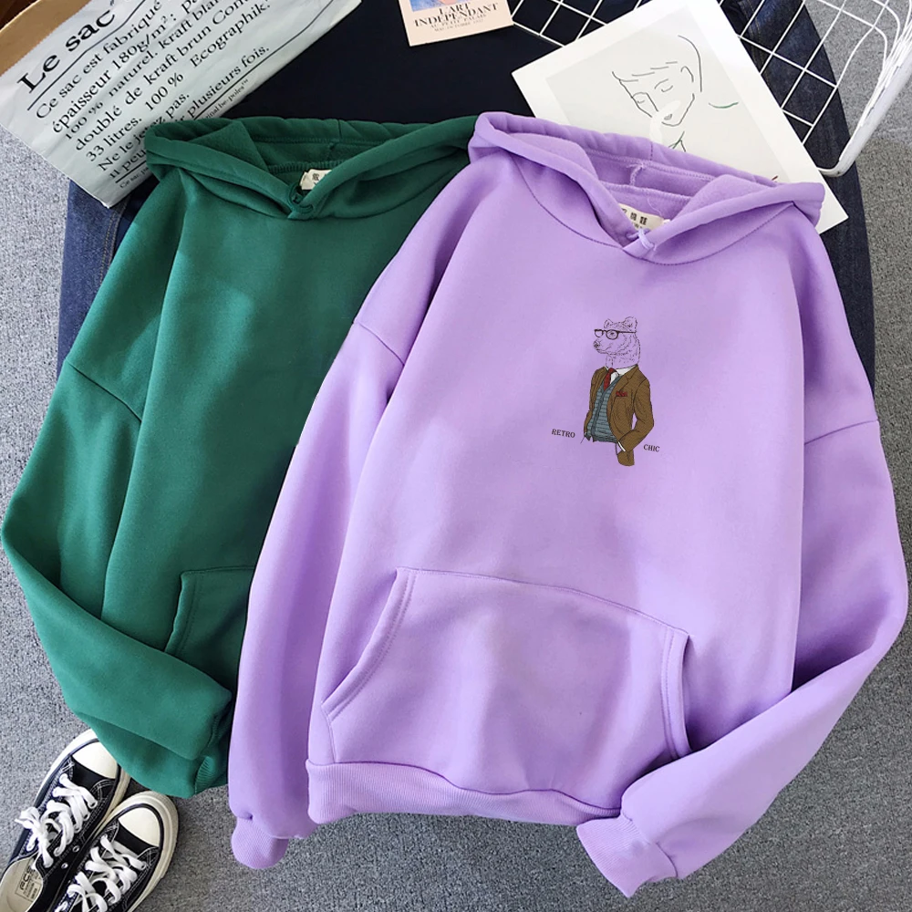 Толстовка для пар, Осень-зима, флисовый пуловер Harajuku с принтом медведя, свитшот, Женская толстовка, повседневная одежда, свитшот, рубашка
