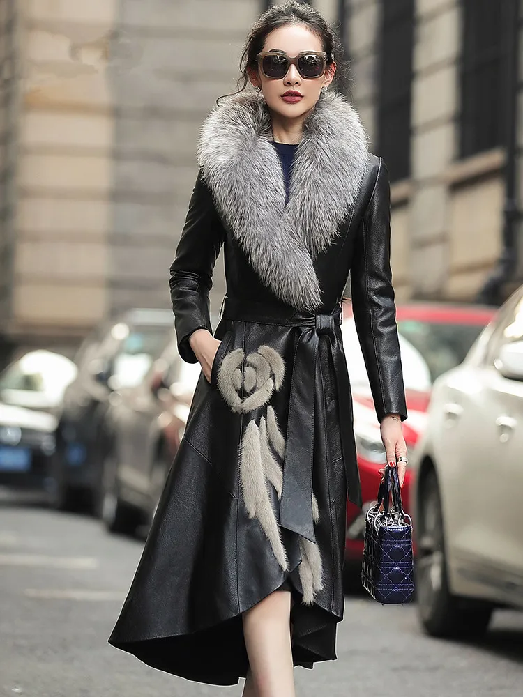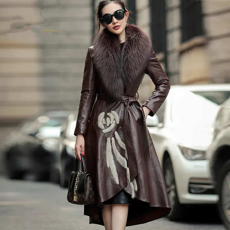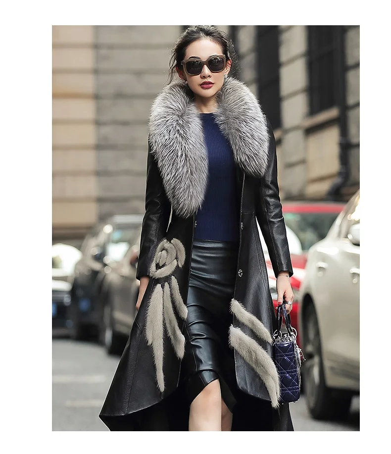AYUNSUEкожаная куртка; Зимнее пальто для женщин; Пуховик с воротником из лисьего меха; Женская куртка из натуральной овечьей кожи; Ветрозащитная куртка Mujer MY