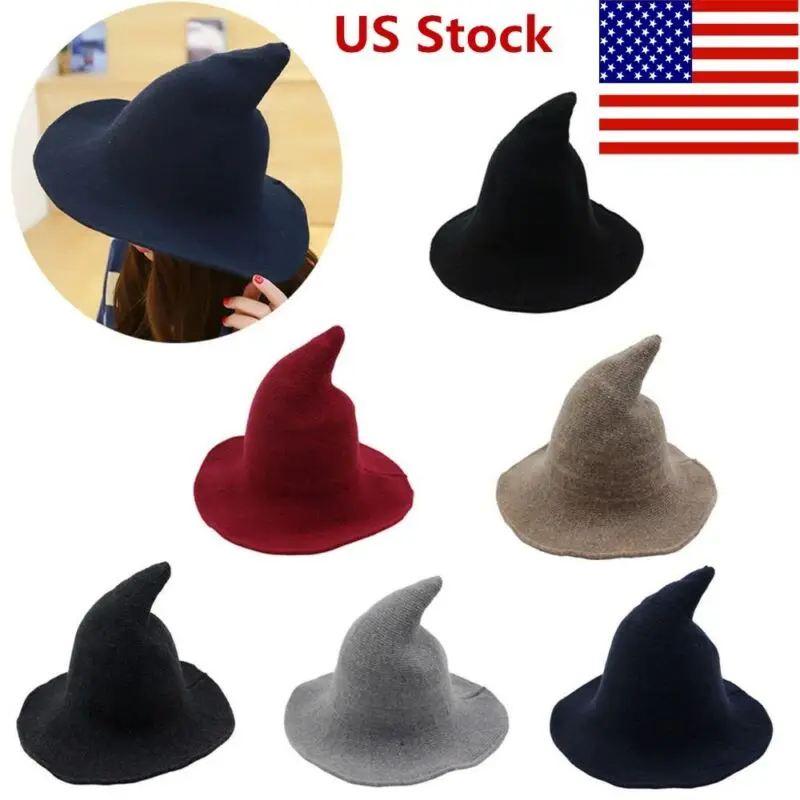 Шляпа ведьмы на Хэллоуин, шерстяная шляпа ведьмы, однотонная, мягка...