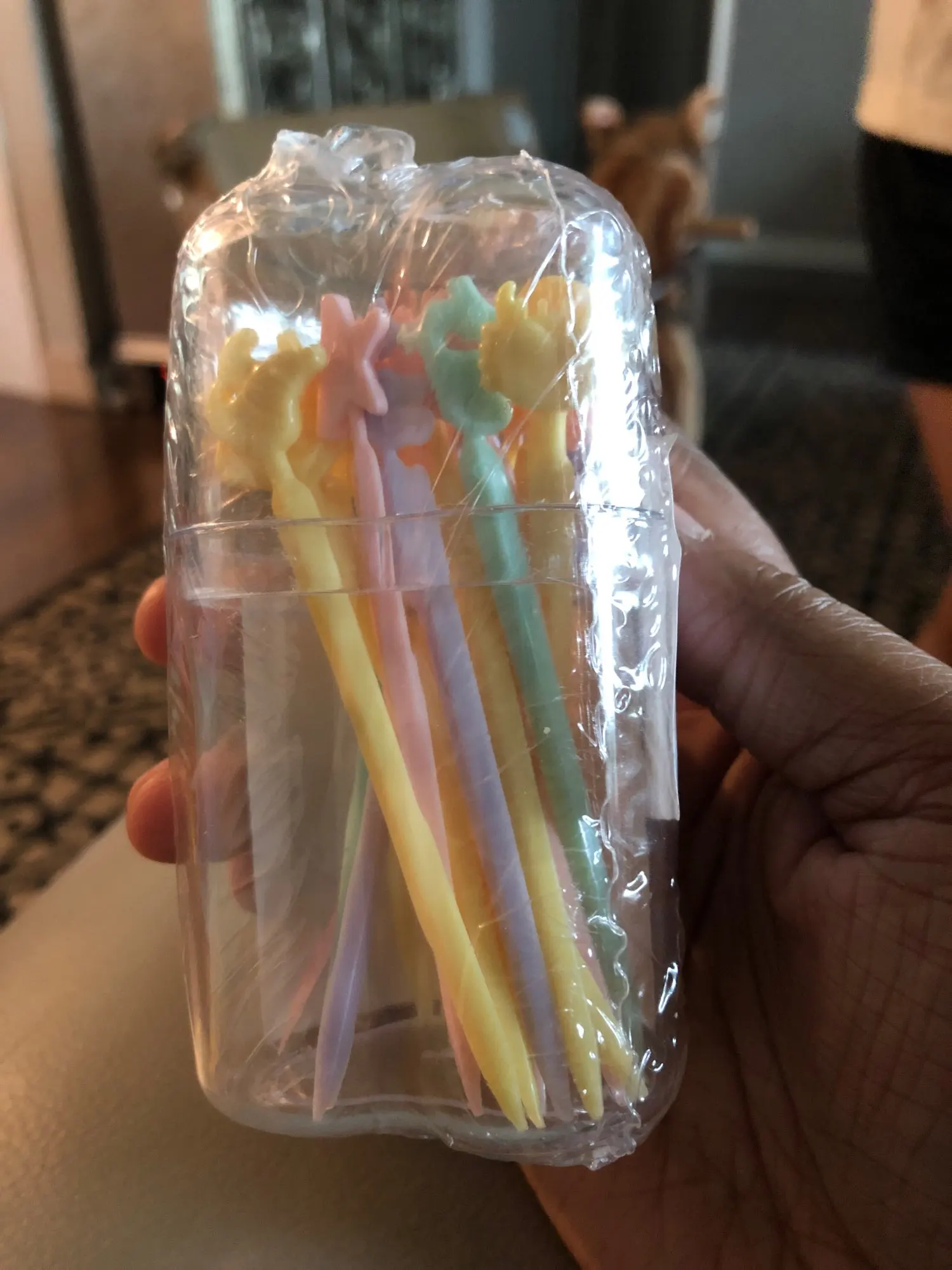 Этот продукт представляет собой набор из 10 милых вилок для фруктов. Изготовлен из высококачественного материала, безопасный, нетоксичный, подходит для вашего использования. Креативный дизайн, делает гастрономию более веселой, заставляет детей хотеть есть фрукты. Идеальные вилки для фруктов и еды, или как украшение для десерта и бенто.