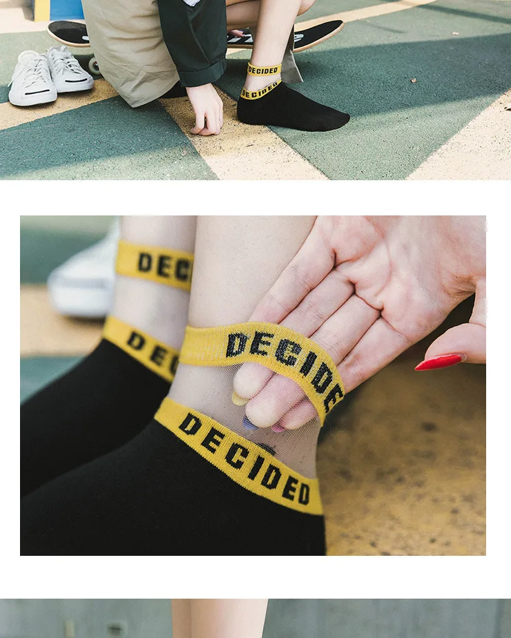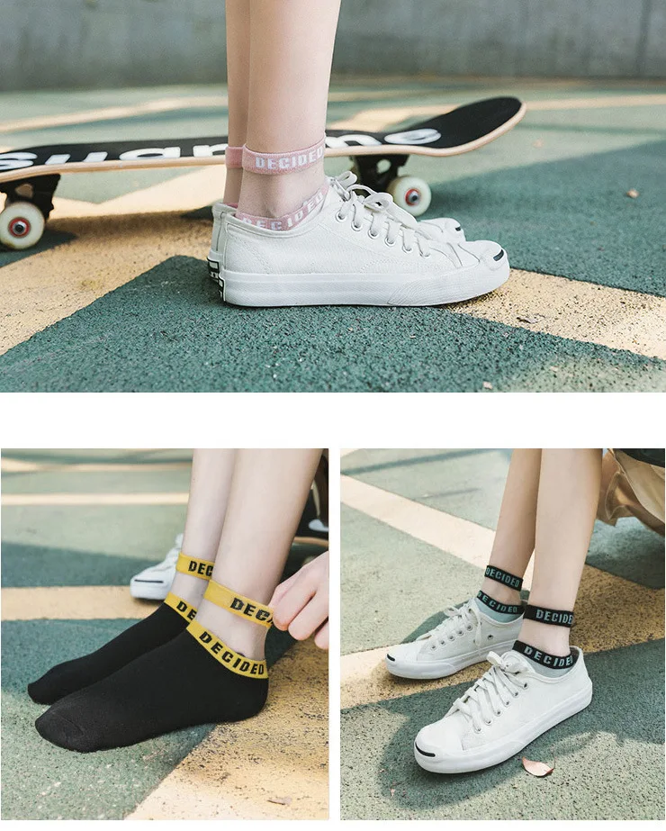 5 пар, Новое поступление, прозрачные носки с буквенным принтом, жен...