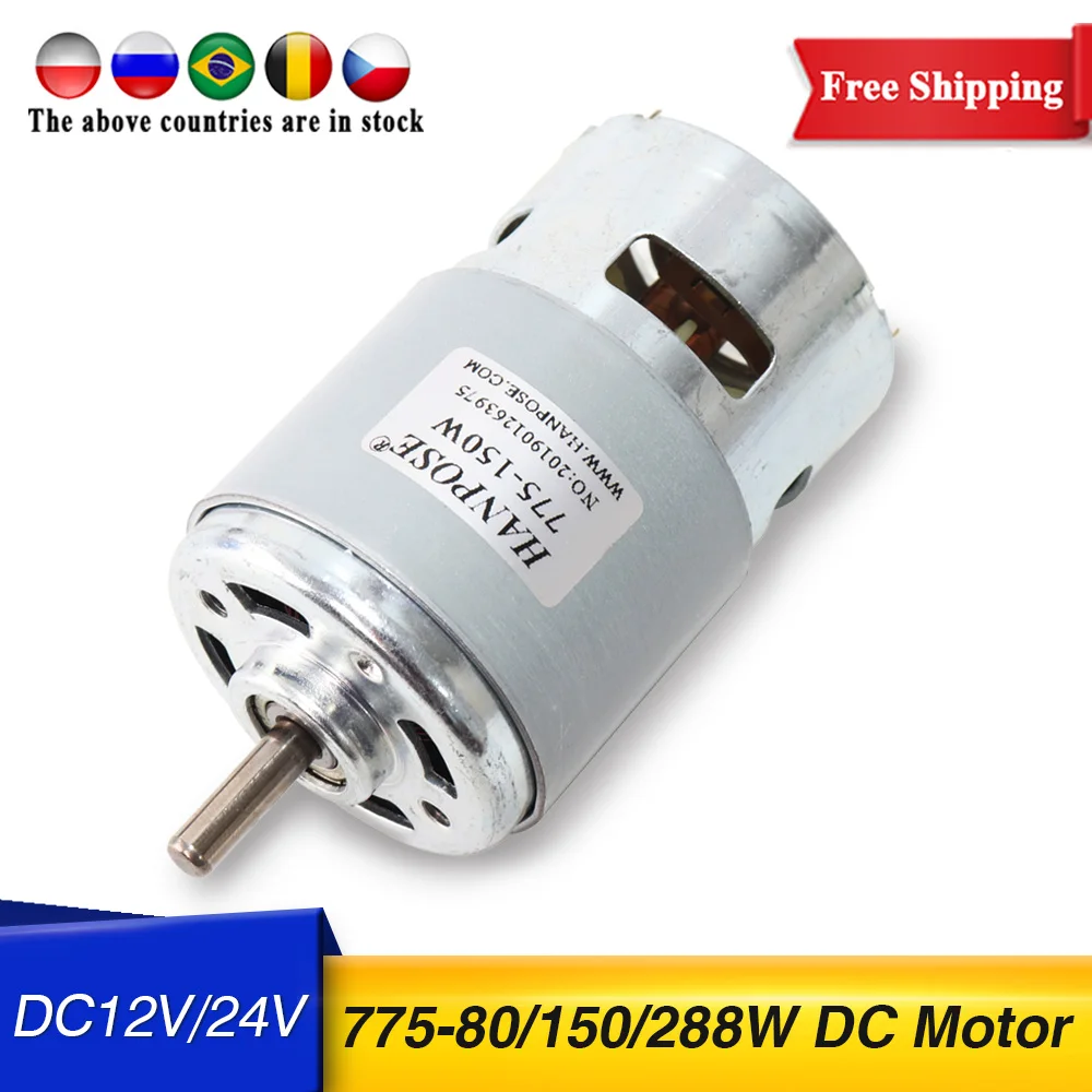 Осветитель для дрели, 775, 12 В, 24 В постоянного тока, 80 Вт, 150 Вт, 200 Вт, 288 Вт, щеточный двигатель с двумя шариковыми подшипниками